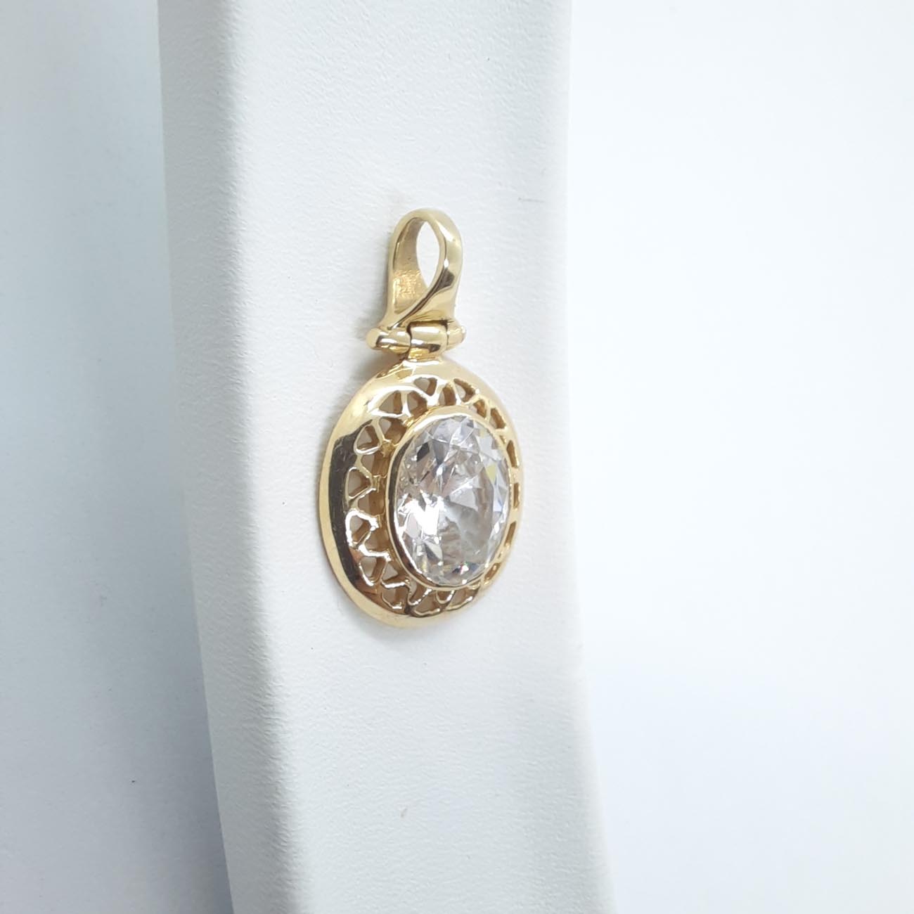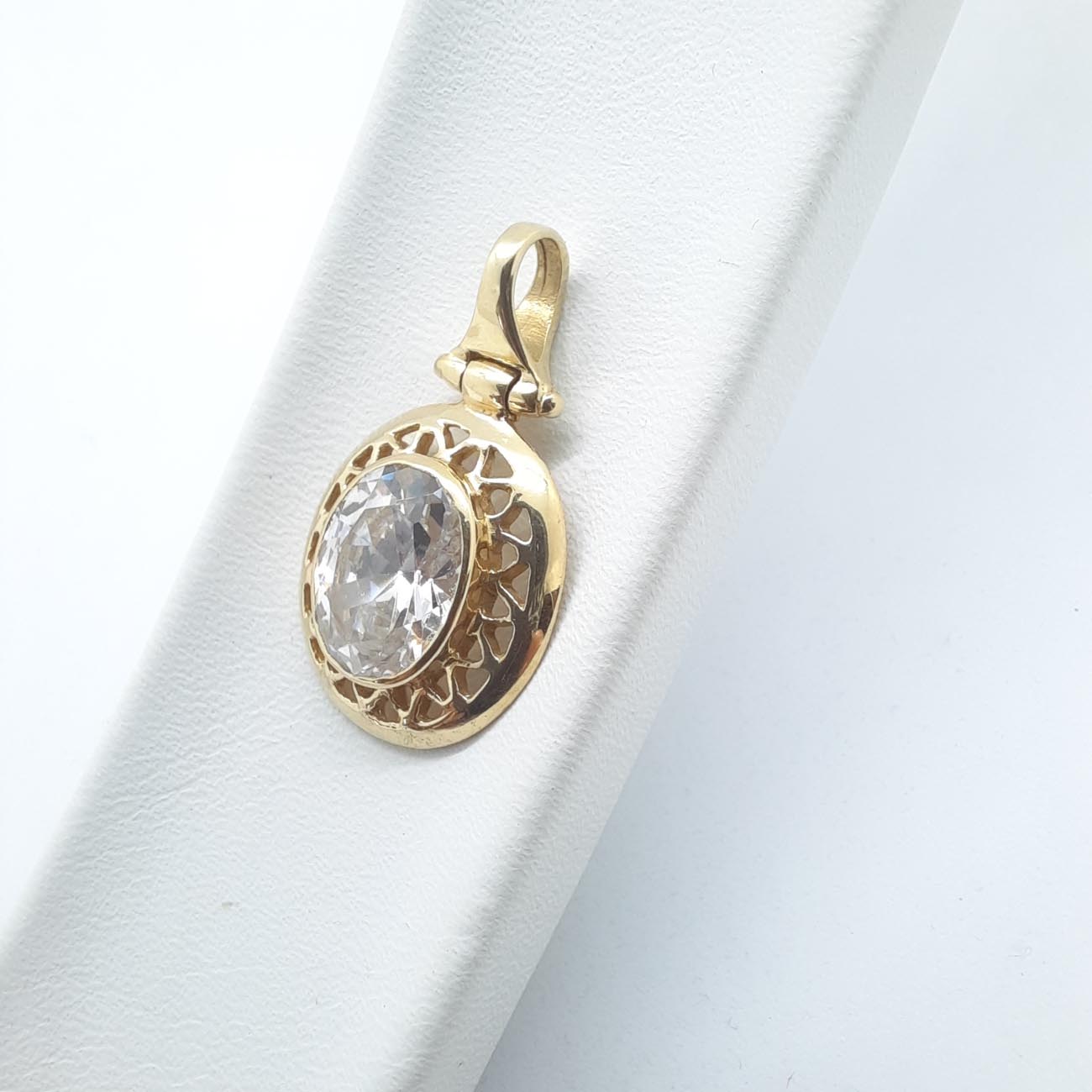 Για την βασίλισσα της καρδιάς σας υπέροχο πολύτιμο μενταγιόν, με χαρακτηριστικό κρίκο και εξαιρετικά σκαλισμένο καστόνι από χρυσό 14 ΚΑΡΑΤΙΑ, με λευκό πελώριο ζιργκόν στο κέντρο, ιδανικό κόσμημα για μια λαμπερή νύφη ! ΠΡΟΣΟΧΗ: το μενταγιόν διατίθεται μεμονωμένο και ΔΕΝ ΠΕΡΙΛΑΜΒΑΝΕΙ ΑΛΥΣΙΔΑ.