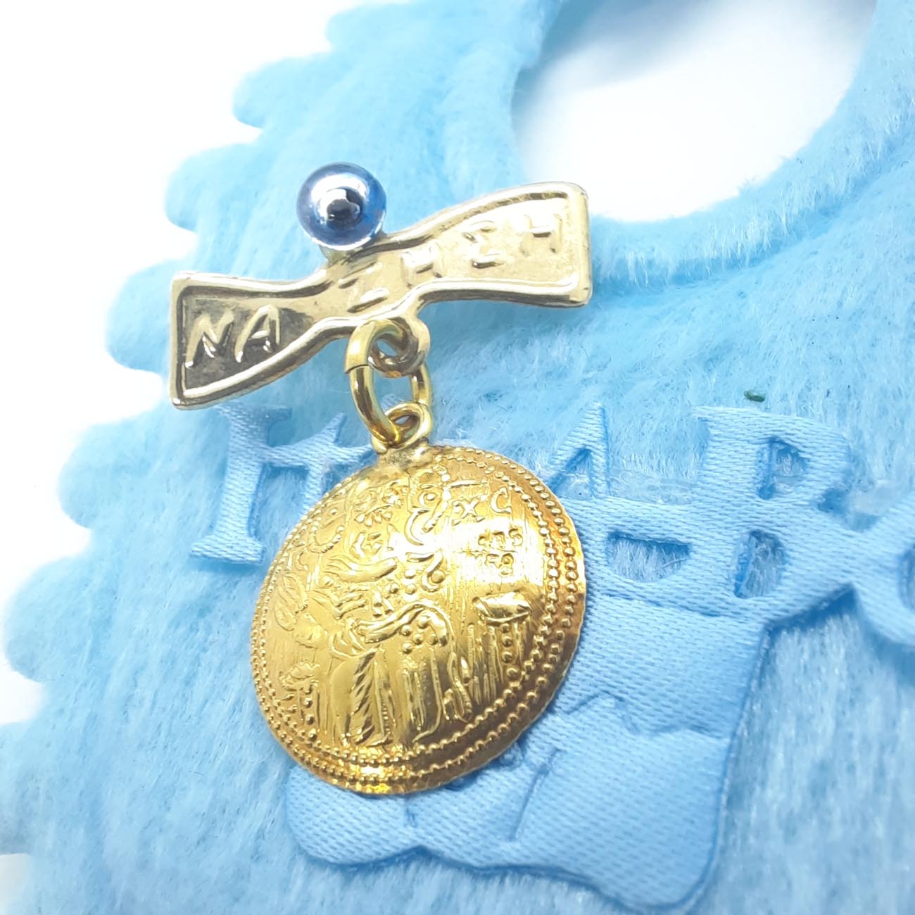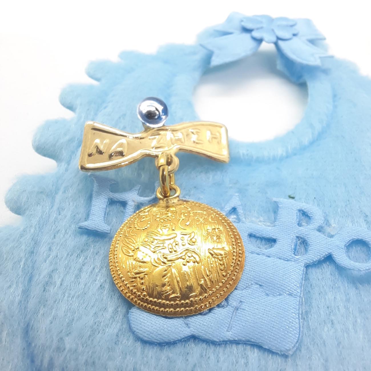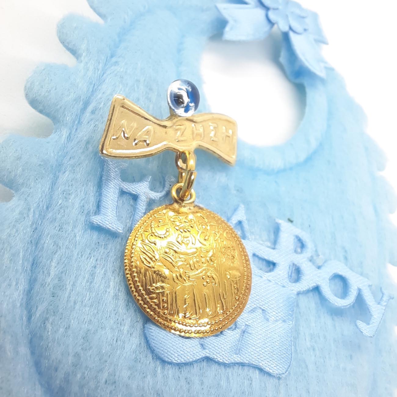 Για προστασία και ευλογία του νεογέννητου υπέροχο χρυσό φυλαχτό Κωνσταντινάτο 14 καρατίων με ματάκι και ευχή.