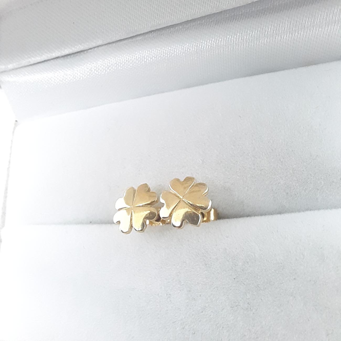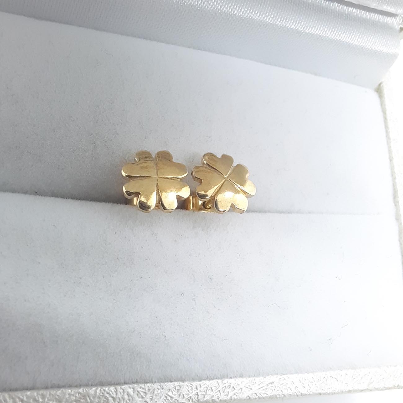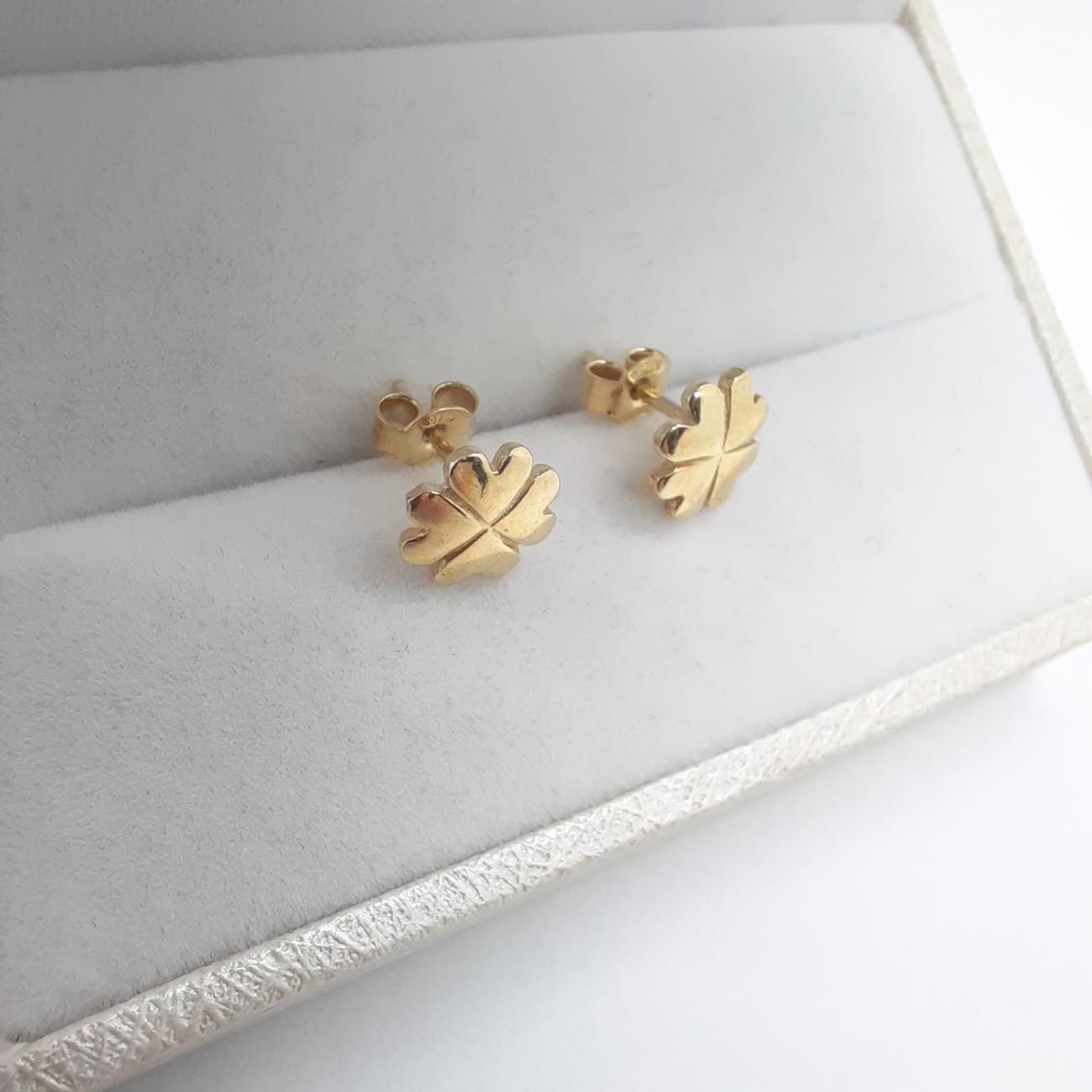 Τέσσερις καρδιές από επιχρυσωμένο ασήμι ενωμένα σχηματίζουν όμορφα τριφύλλια, τυχερά σκουλαρίκια για τις μικρές κυρίες.