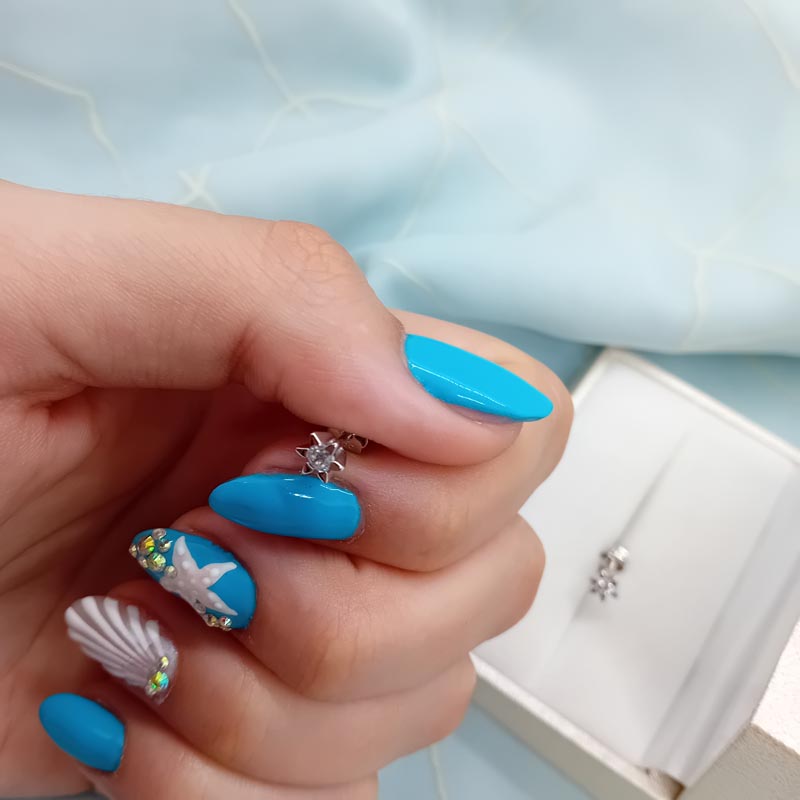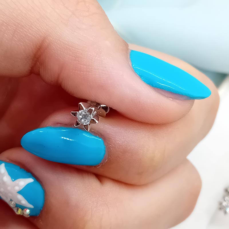 Χαριτωμένα αστεράκια από λευκόχρυσο 14 καρατίων με κεντρικό λευκό ζιργκόν, ιδανικά σκουλαρίκια για την μαμά και για την κόρη !
