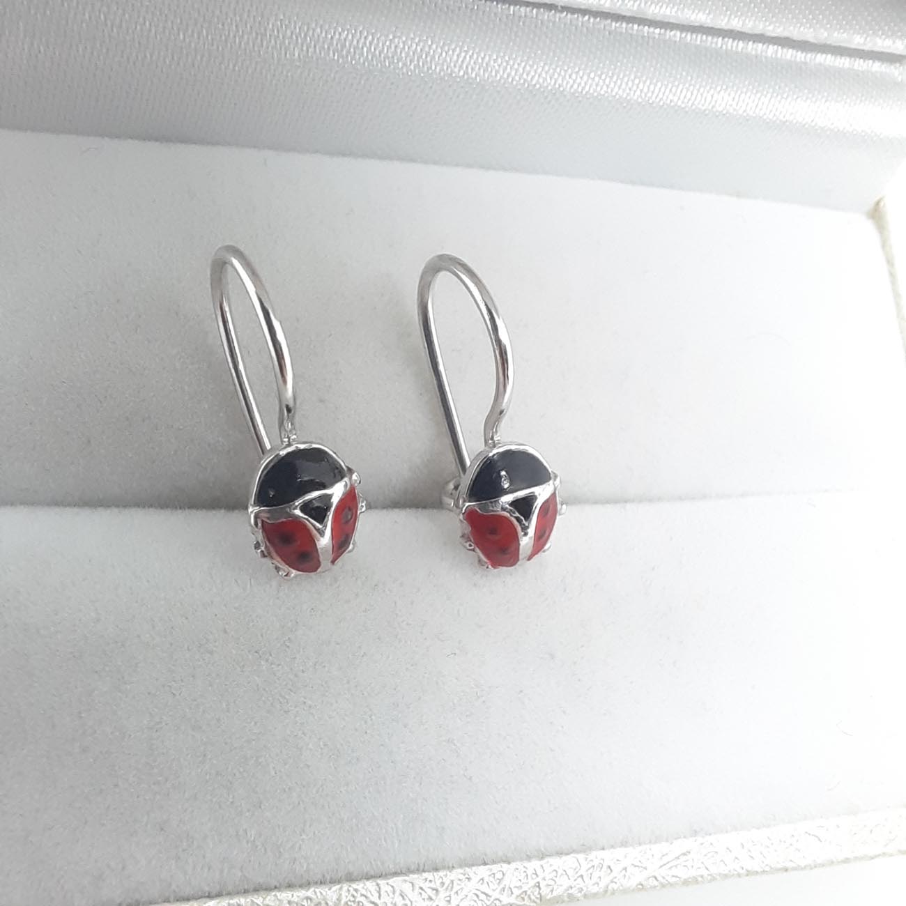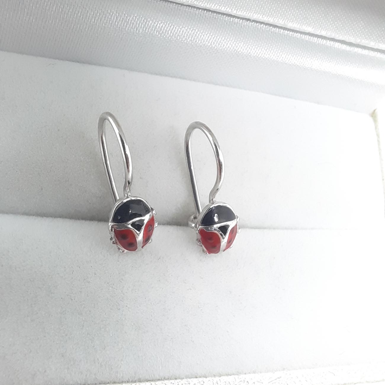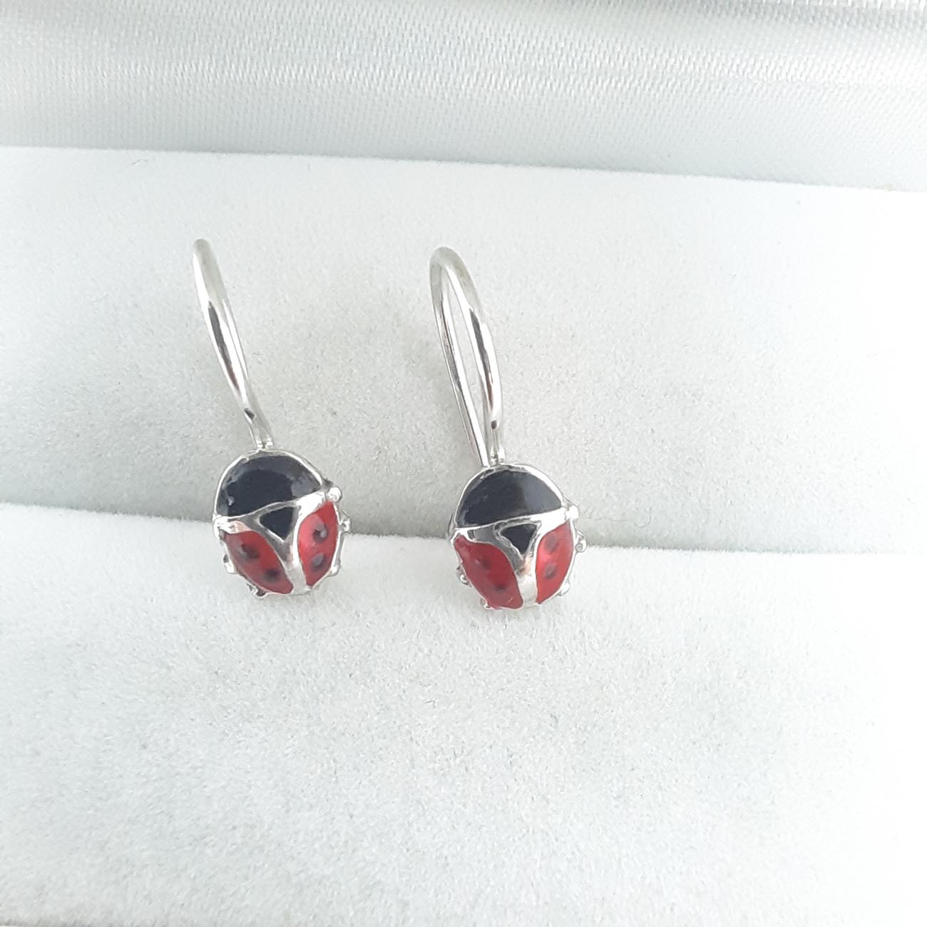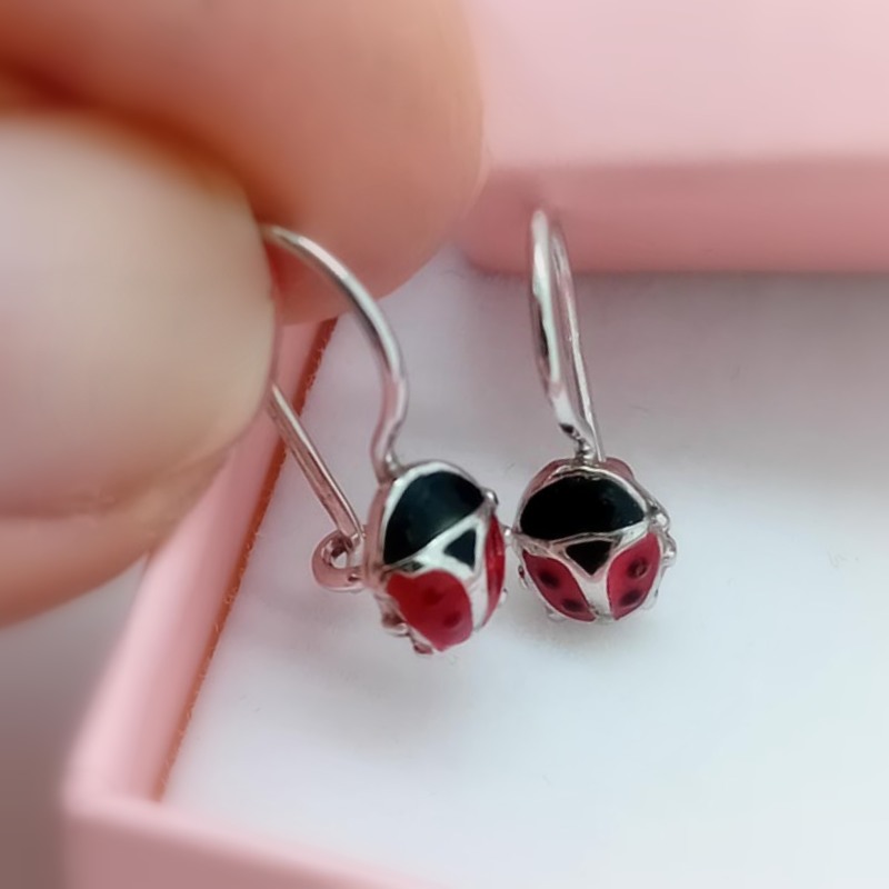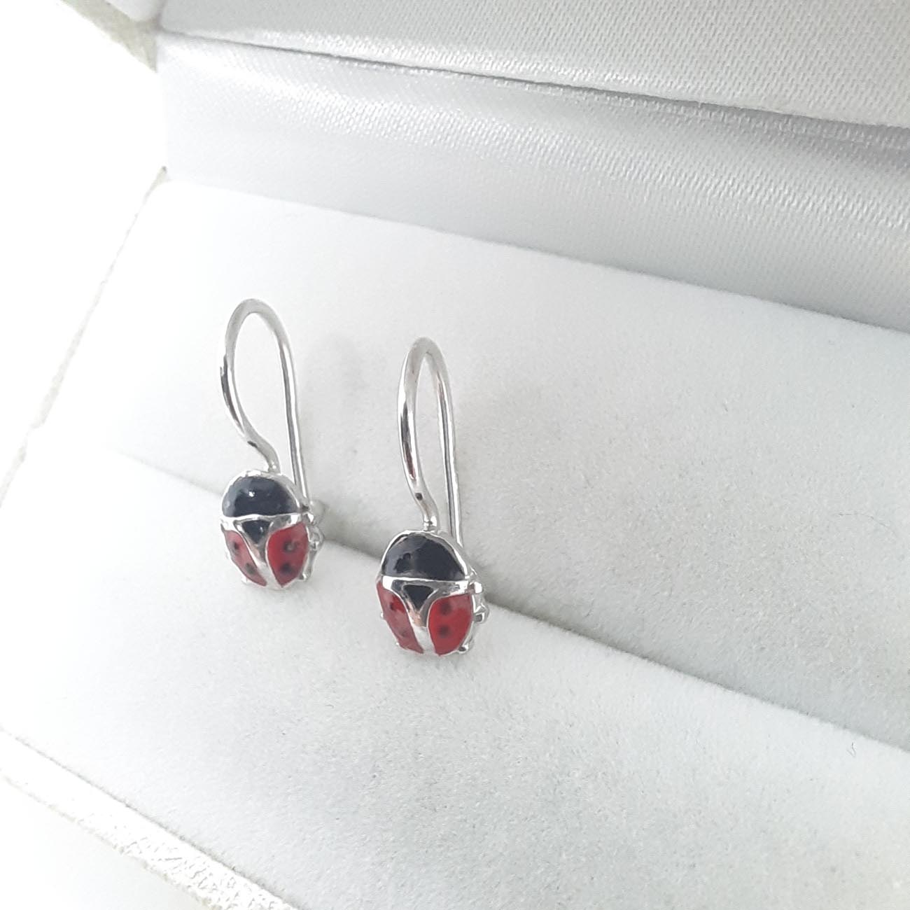 Οι πασχαλίτσες αποτελούν ένα από τα πιο δημοφιλή designs στα παιδικά σκουλαρίκια. Κρεμαστά σκουλαρίκια από ασήμι με λεπτομέρειες σμάλτου.