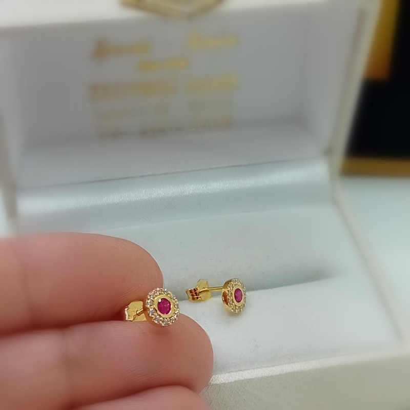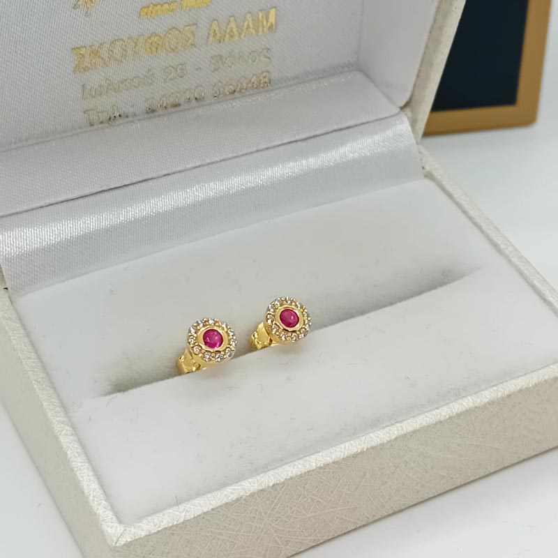 Σκουλαρίκια μικρά, αλλά εντυπωσιάζουν σε κάθε σας εμφάνιση και κυρίως κάθε ηλικία ! Από επιχρυσωμένο ασήμι κυκίκό design και 1 κεντρικό ζιργκόν σε απόχρωση ροζ magenta περιστοιχισμένο από μικρότερα αστραφετρά λευκά ζιργκονάκια.