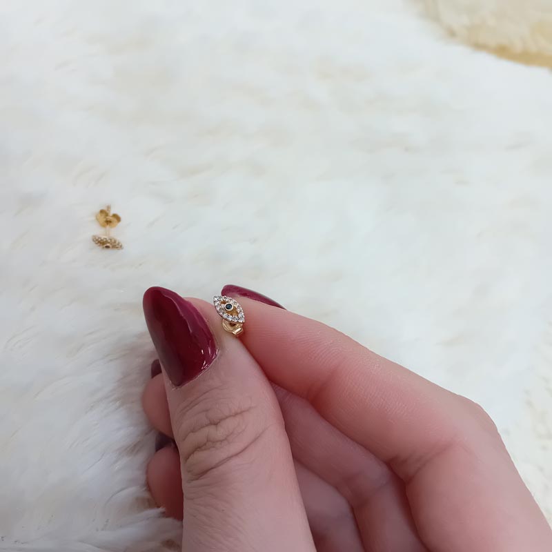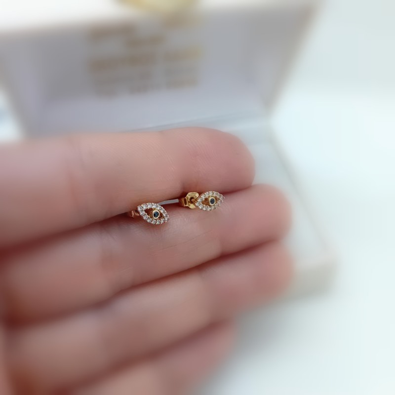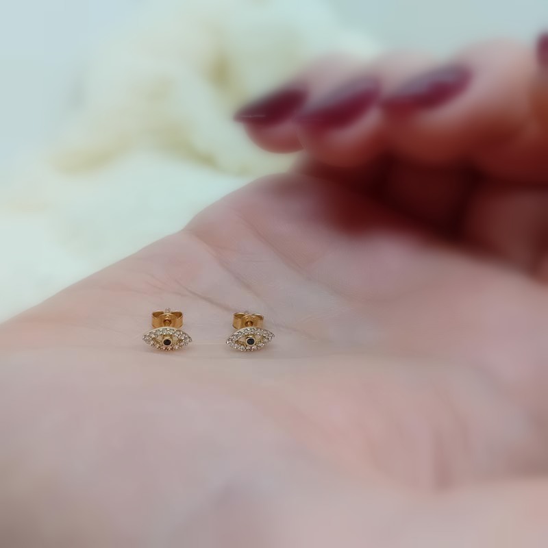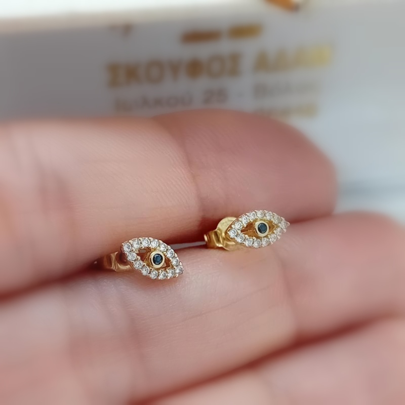 Γουστόζικα πανέμορφα πολύ μικροσκοπικά "ματάκια" από χρυσό Κ9 με ζιργκόν, κομψό, πολύτιμο κόσμημα και ιδανικά για μπέμπα για προστασία από βασκανία .