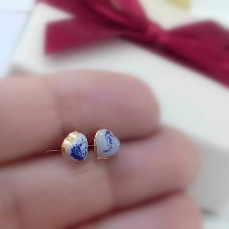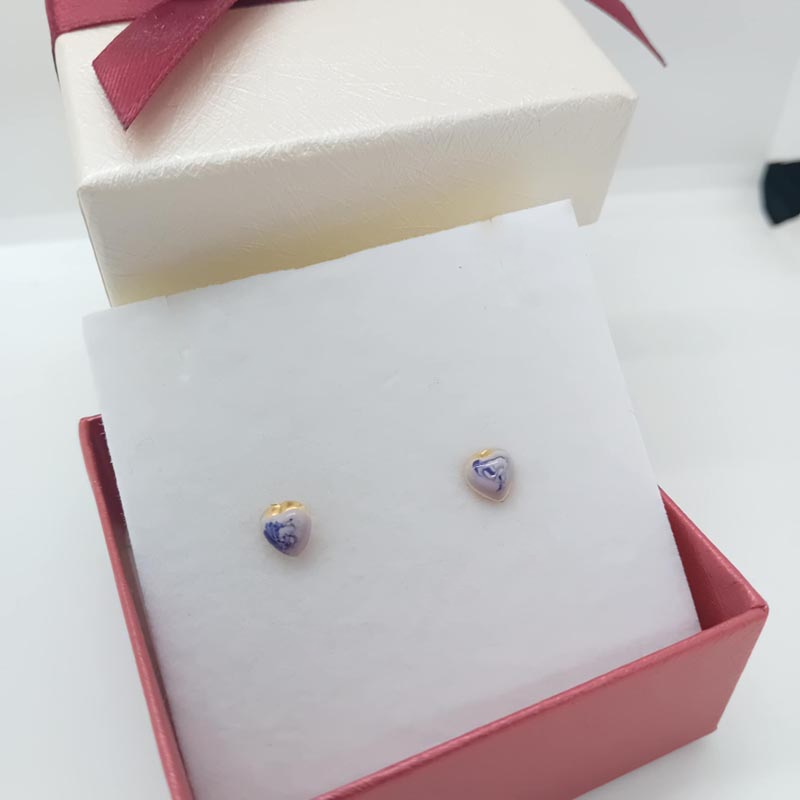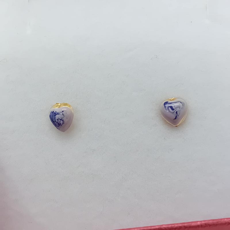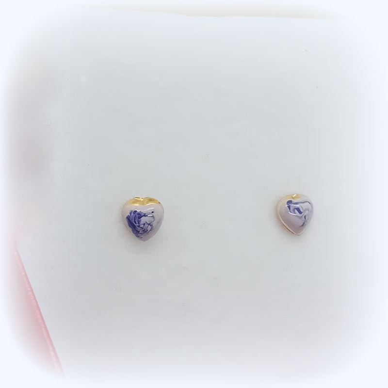 Χρυσά σκουλαρίκια Κ14 καρδιά με μωβ σχέδια