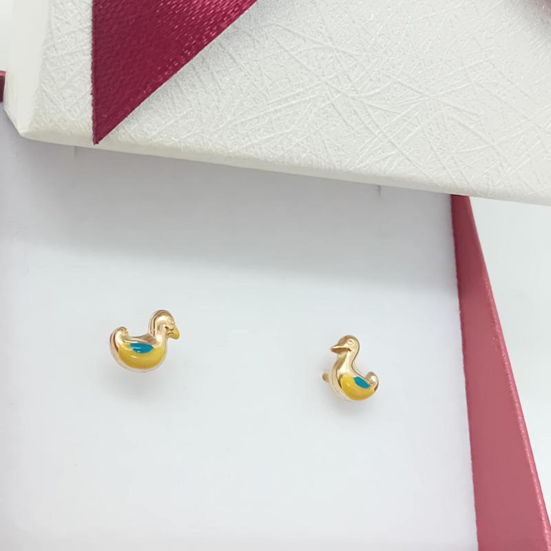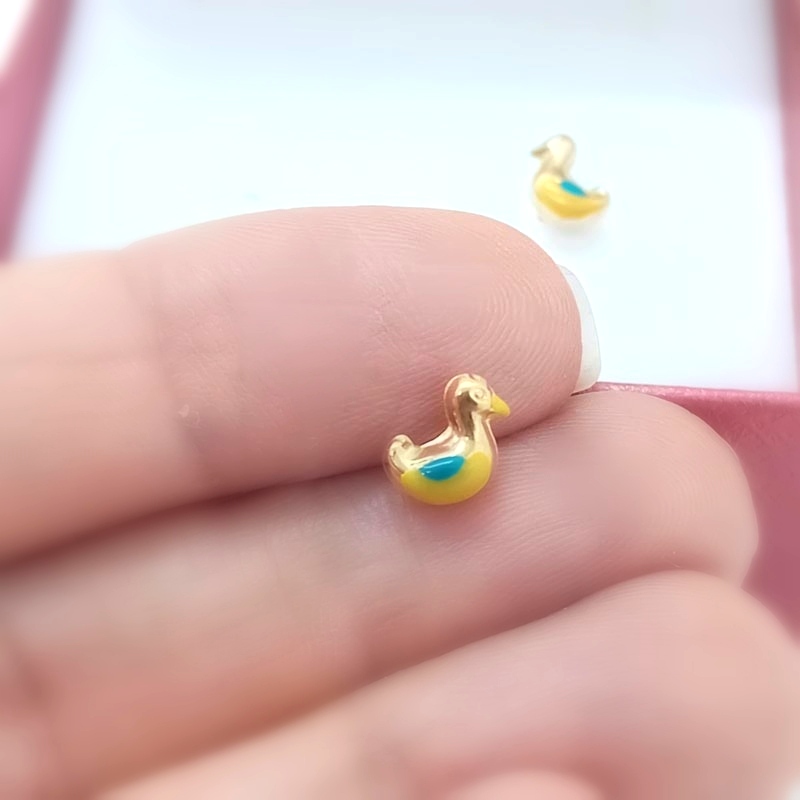Χαριτωμένες μικρές πάπιες από χρυσό και σμάλτο, 14 καράτια, ένα όμορφο σετ σκουλαρίκια για μικρές ηλικίες.