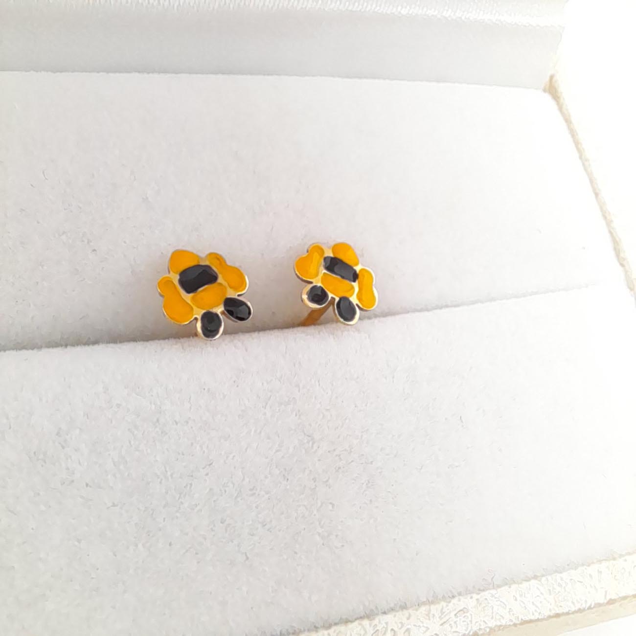 Πολυαγαπημένο μοτίβο στις μικρές ηλικίες, η μέλισσα τραβάει σαν μαγνήτης το βλέμμα των μικρών δεσποινίδων! Από χρυσό 9 καρατίων, με όμορφες λεπτομέρειες σμάλτου, βάρους 0.9 γραμμάρια.