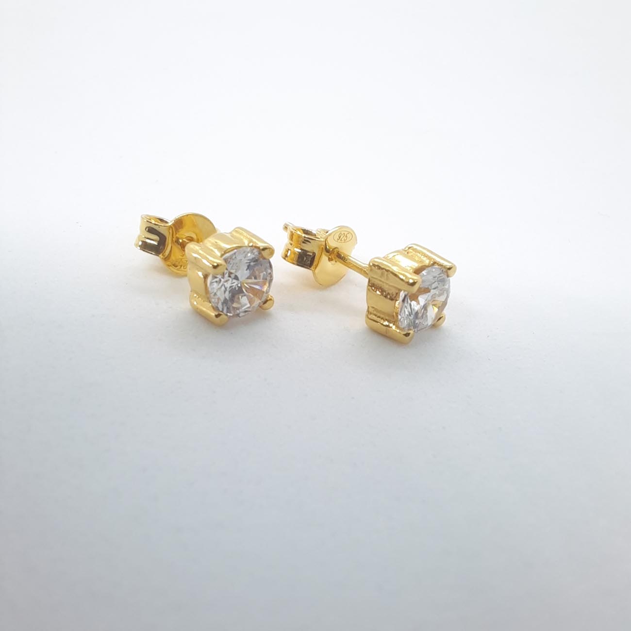 Διαχρονικά , κομψά και ευκολοφόρετα ασημένια επιχρυσωμένα σκουλαρίκια ζιργκόν με μεγάλο λευκό μονόπετρο, τέλεια επιλογή για κάθε στιγμή!