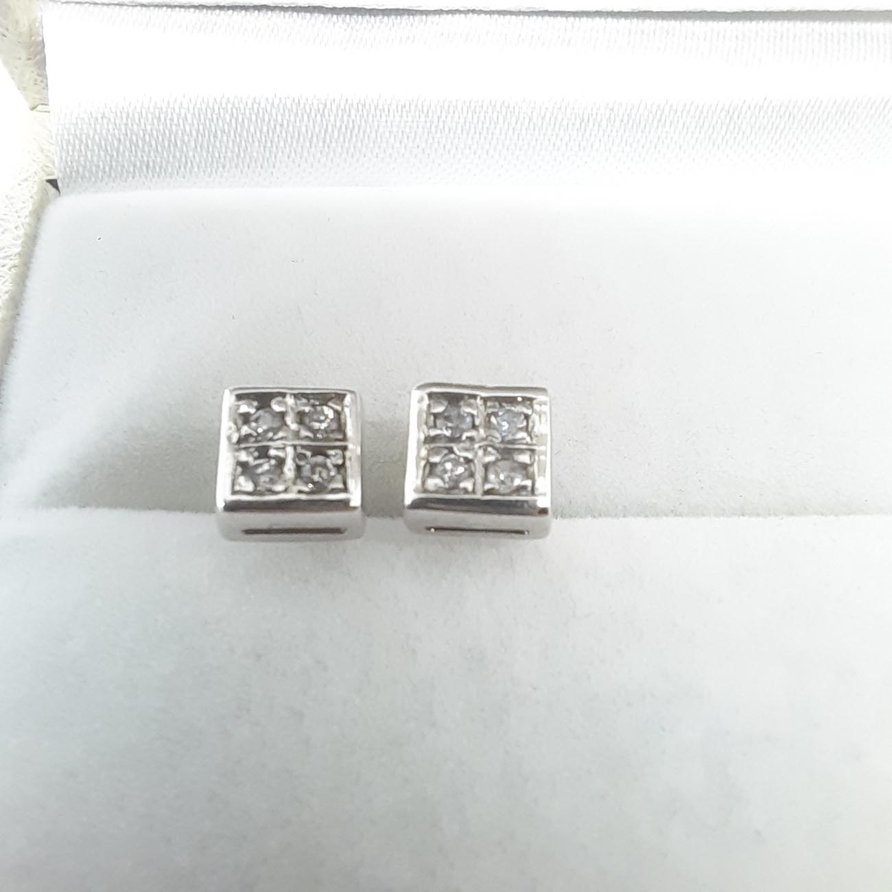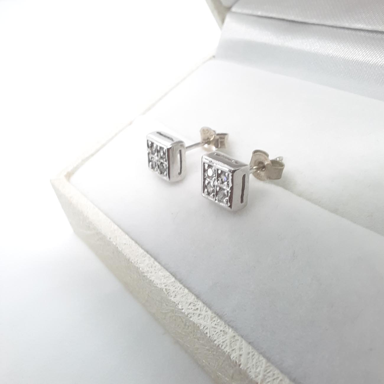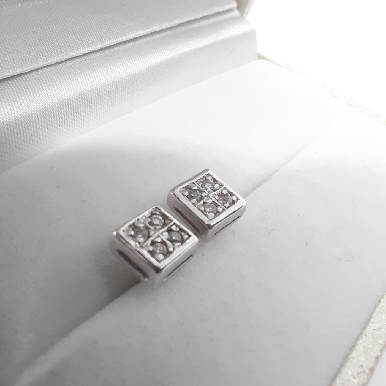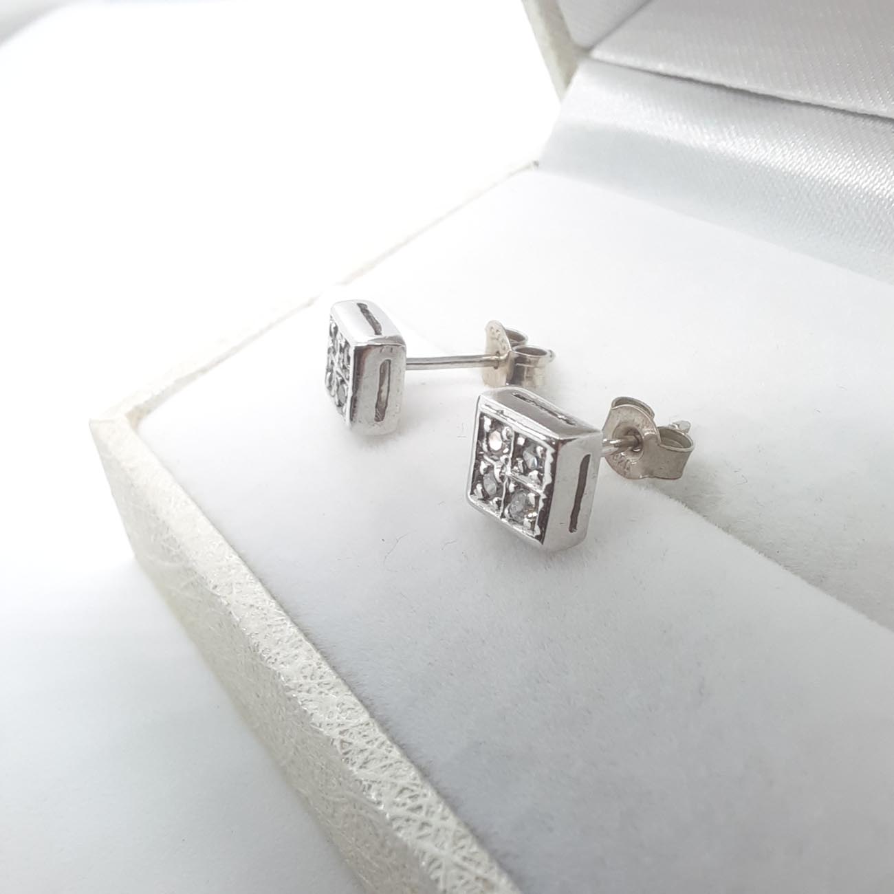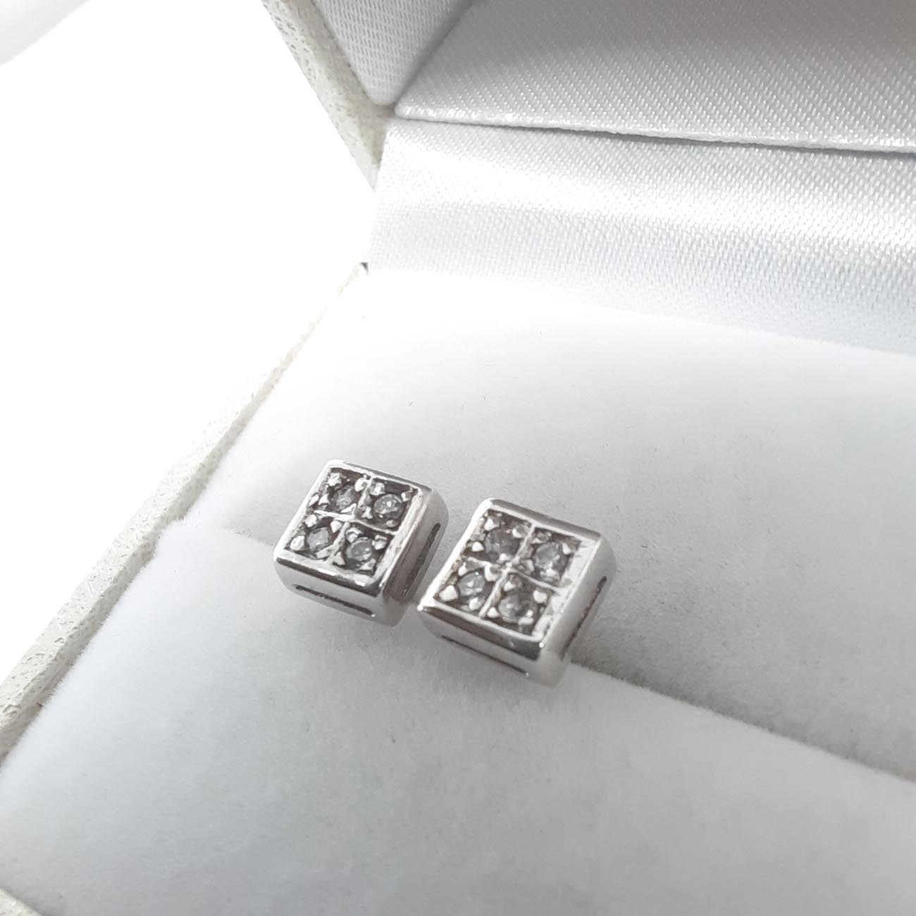 Μίνιμαλ σκουλαρίκια από ασήμι σε τετράγωνο σχήμα με λευκά ζιργκόν, ιδανικά για κάθε κομψή εμφάνισή σας.