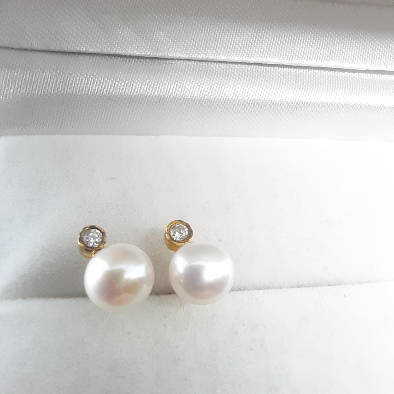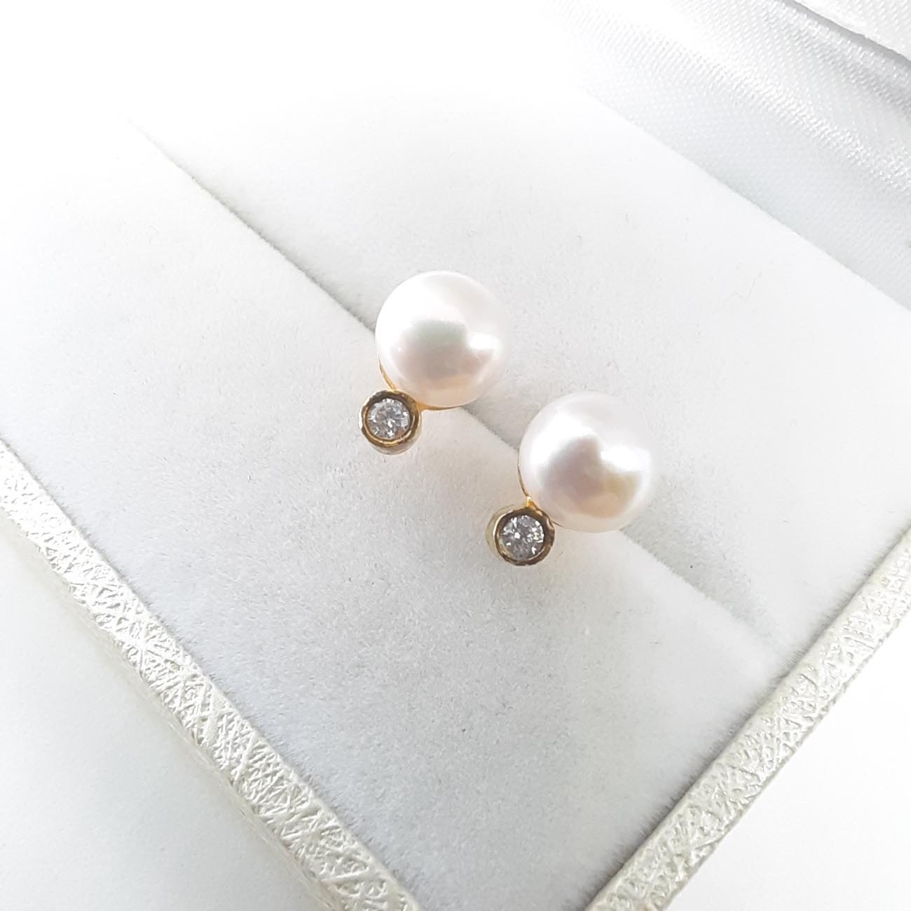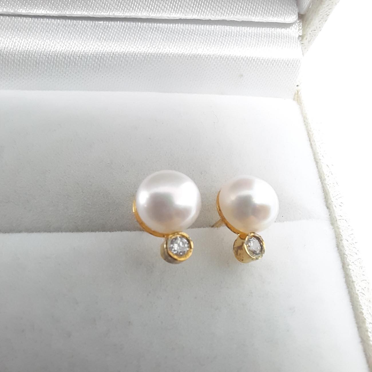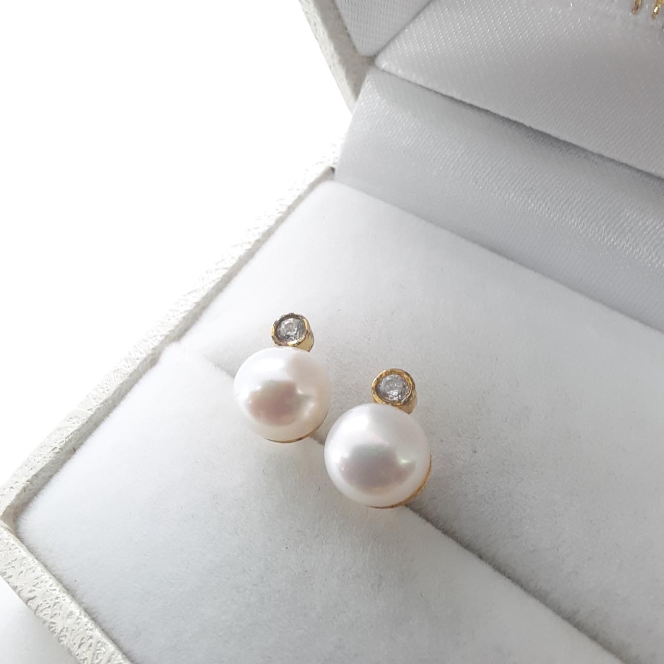 Εντυπωσιακές πέρλες με διακριτικό λευκό ζιργκόν σε καστόνι από επιχρυσωμένο ασήμι, ιδανικά για κάθε σικ εμφάνιση αλλά και για κάθε φινετσάτη νύφη.