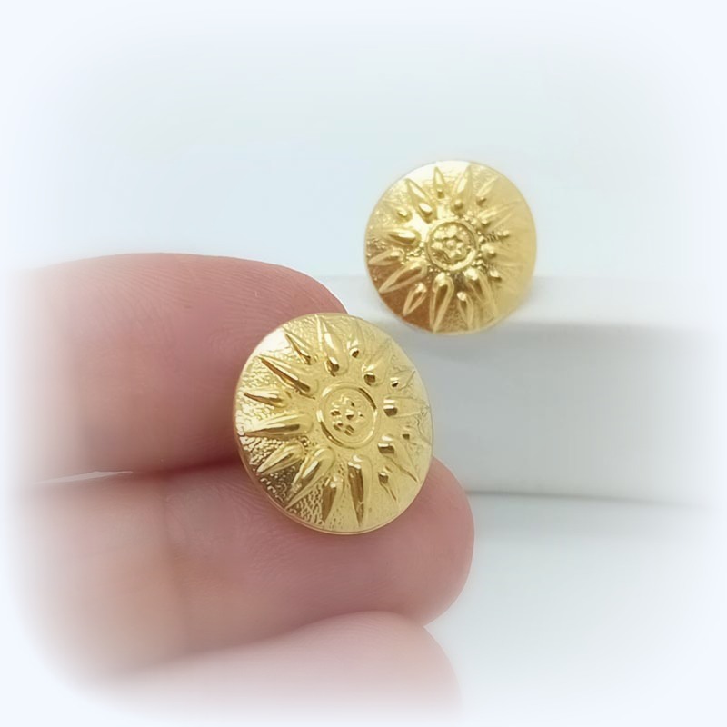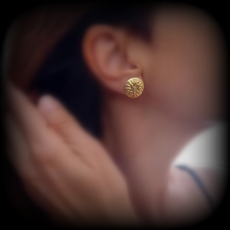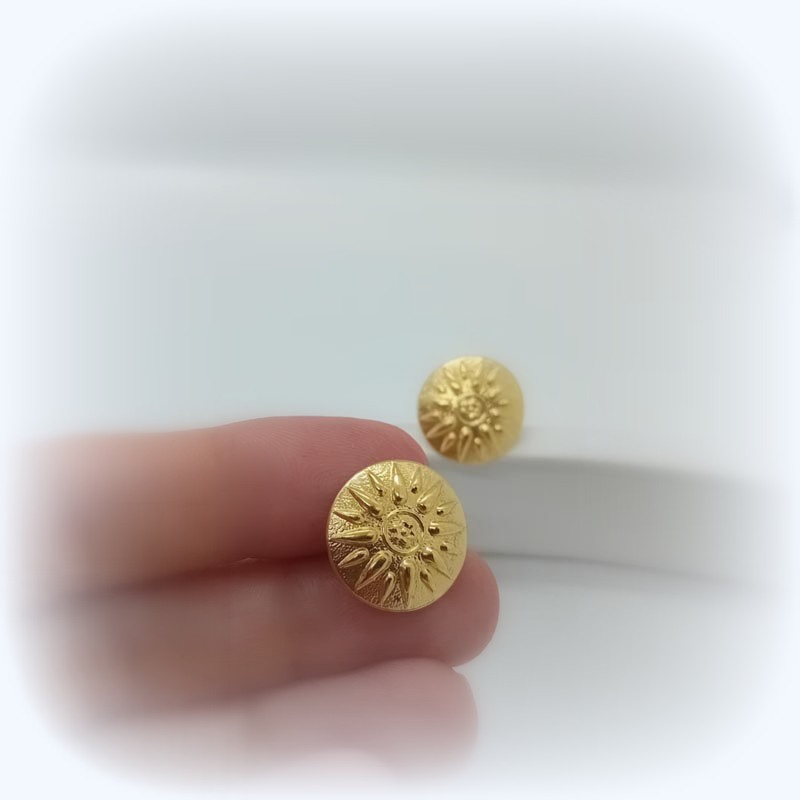 Πολυτελή σκουλαρίκια αρχαιοελληνικού ύφους σε σχήμα δίσκου με ανάγλυφο το σύμβολο ¨"ΗΛΙΟΣ ΤΗΣ ΒΕΡΓΙΝΑΣ" από ΧΡΥΣΟ 14 καρατίων.