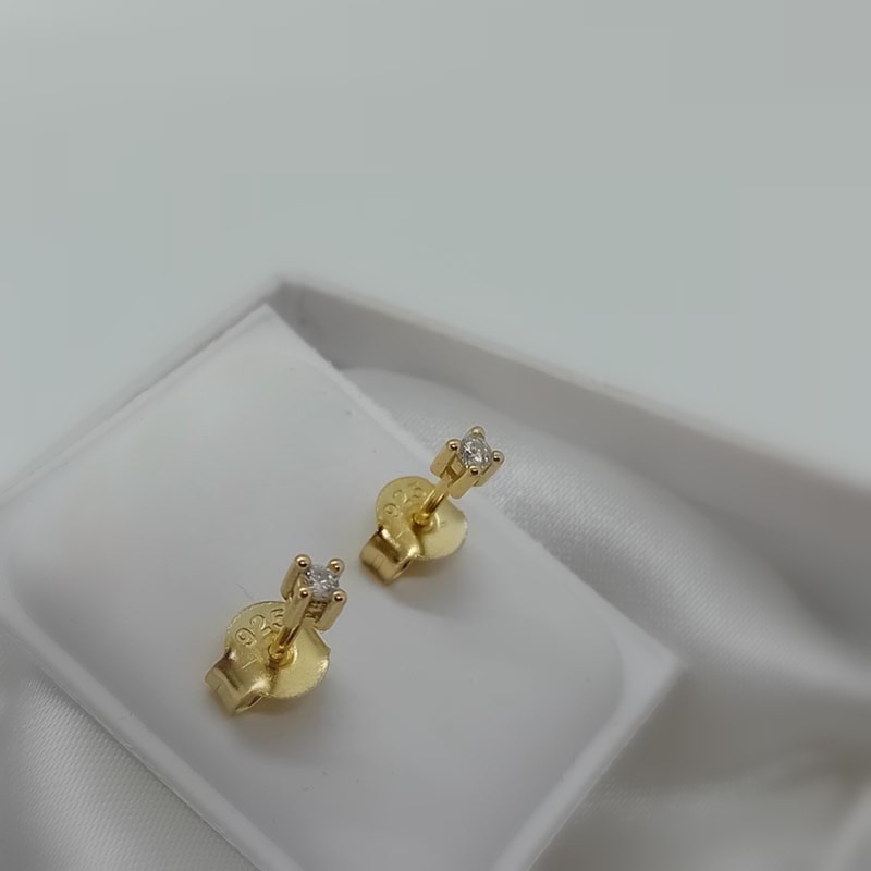 Για κάθε ηλικία, μικρά διακριτικά σκουλαρικάκια από επιχρυσωμένο ασήμι, design "ψειρίτσες" με λευκό ζιργκονάκι.
