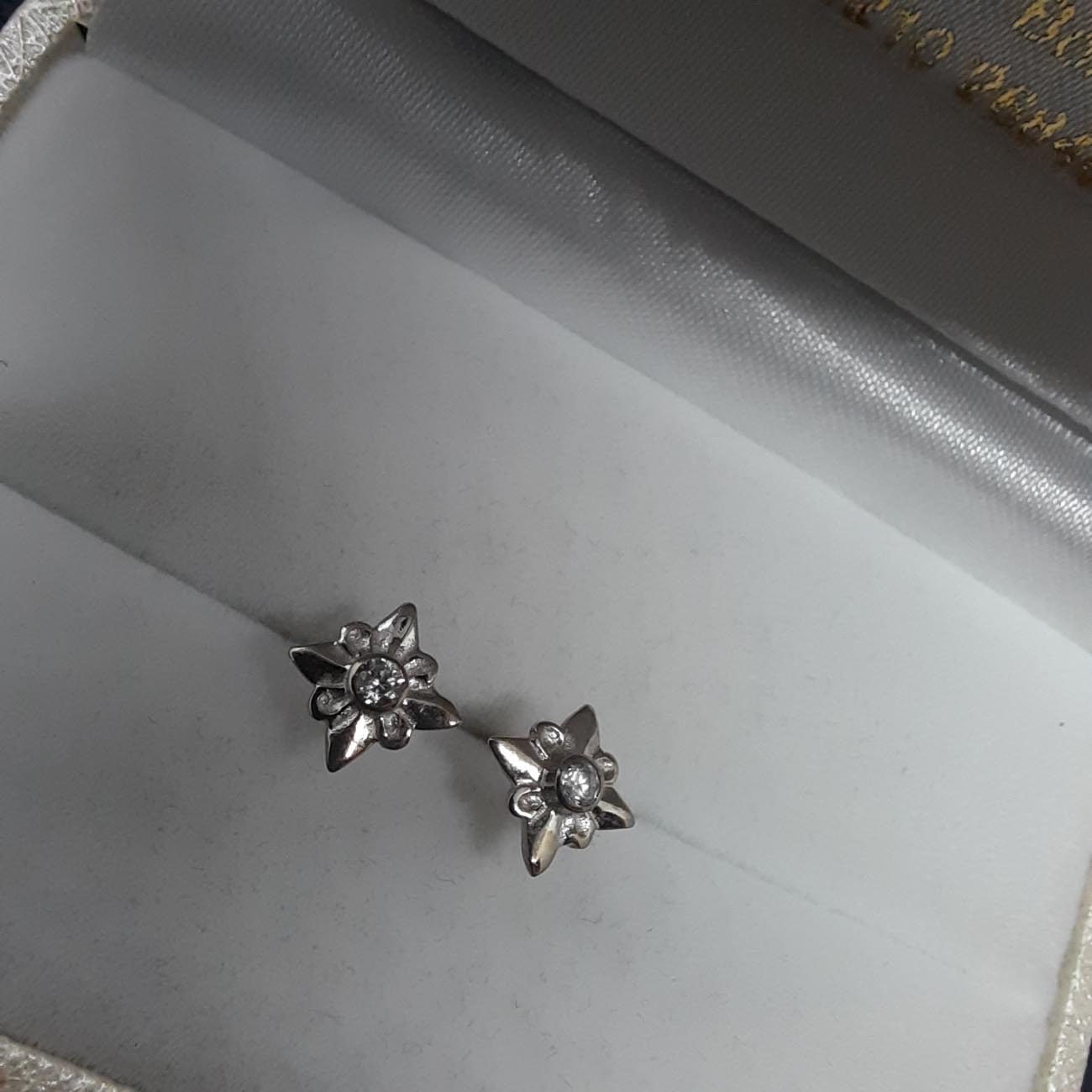 Εμπνευσμένα από μεσαιωνικό παραμύθι με ρομαντικές πριγκίπισσες , υπέροχα σκουλαρίκια λευκόχρυσα, με υπέροχη χάραξη και λευκό κεντρικό ζιργκόν.