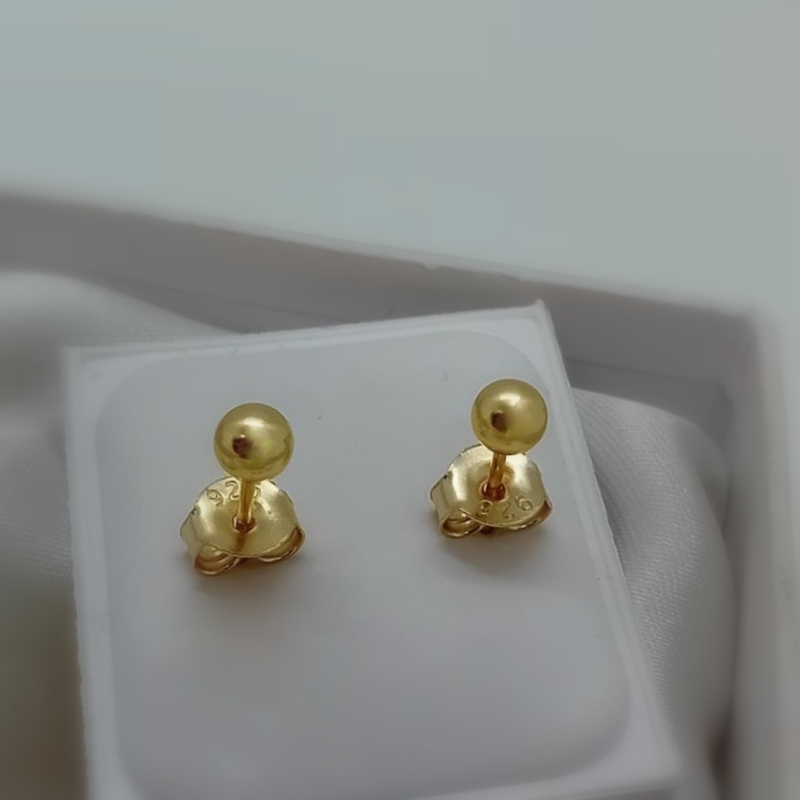 Σκουλαρίκια χαριτωμένα και διαχρονικά, μικρές μπίλιες από επιχρυσωμένο ασήμι.