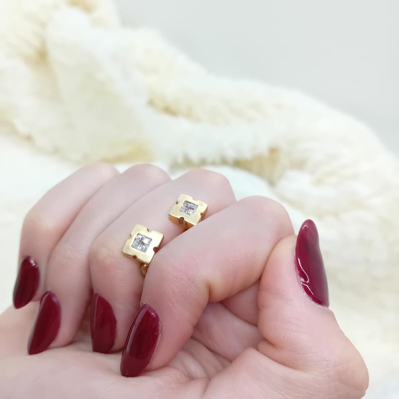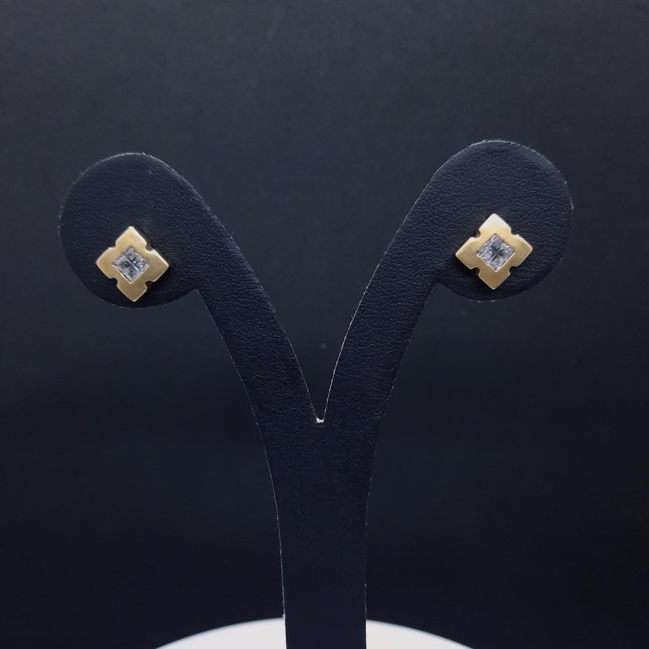 Aπό χρυσό 14 καρατίων με διακριτική ΜΑΤ όψη, σε σχήμα ρόμβου και με κεντρικό ευδιάκριτο λευκό ζιργκόν, ιδανικό δώρο γενεθλίων και επετείου, αλλά φυσικά και μοναδικό κόσμημα για νεαρές μοντέρνες νύφες !