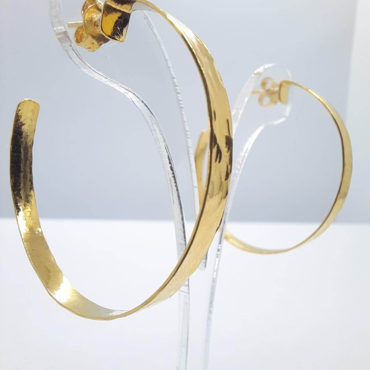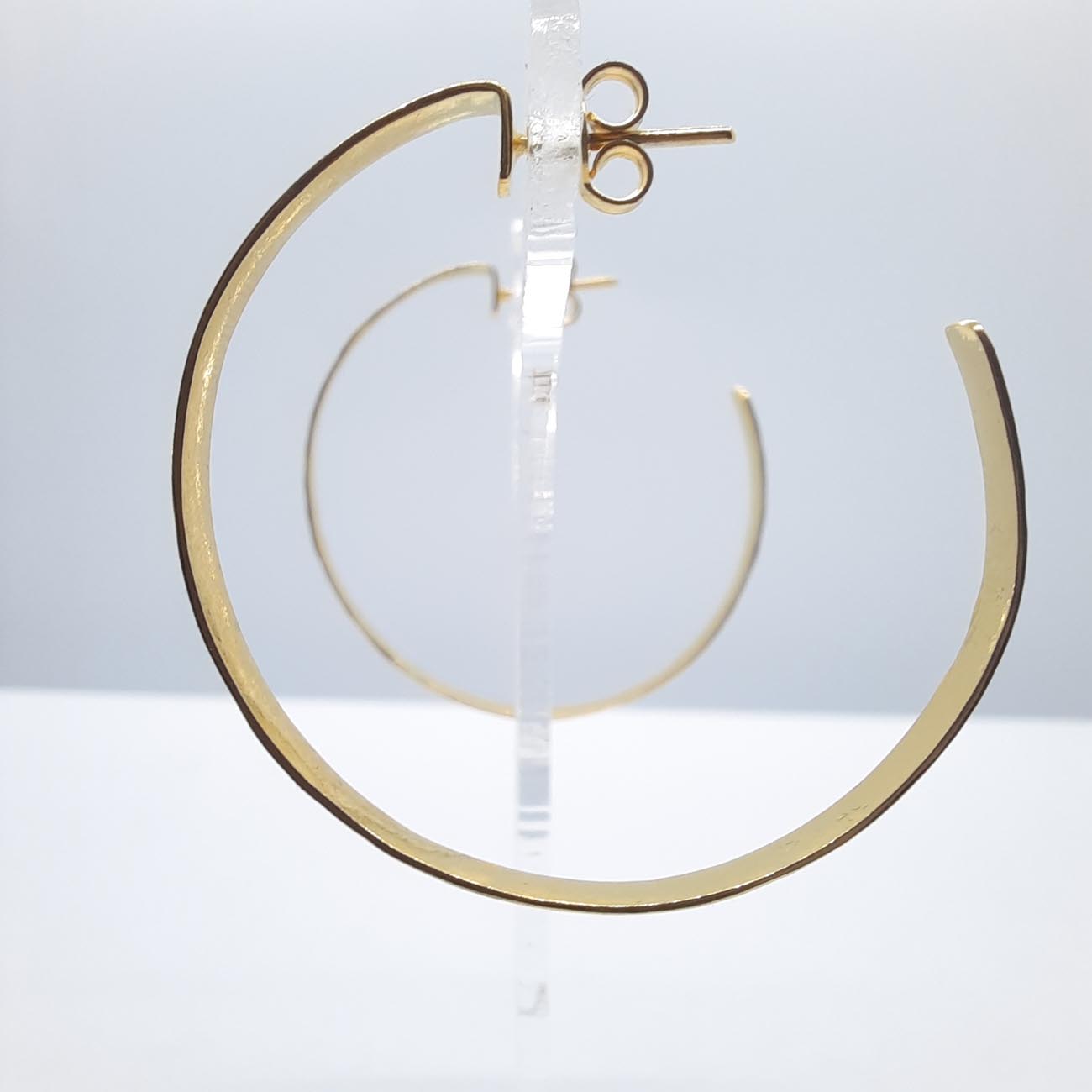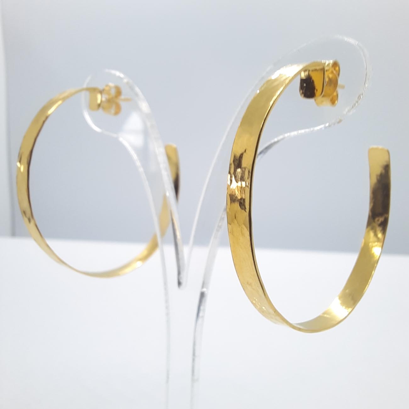Υπέρκομψοι κρίκοι με σφυρήλατη επιφάνεια από ασήμι επιχρυσωμένο, ιδανικοί για βραδυνές εντυπωσιακές εμφανίσεις.