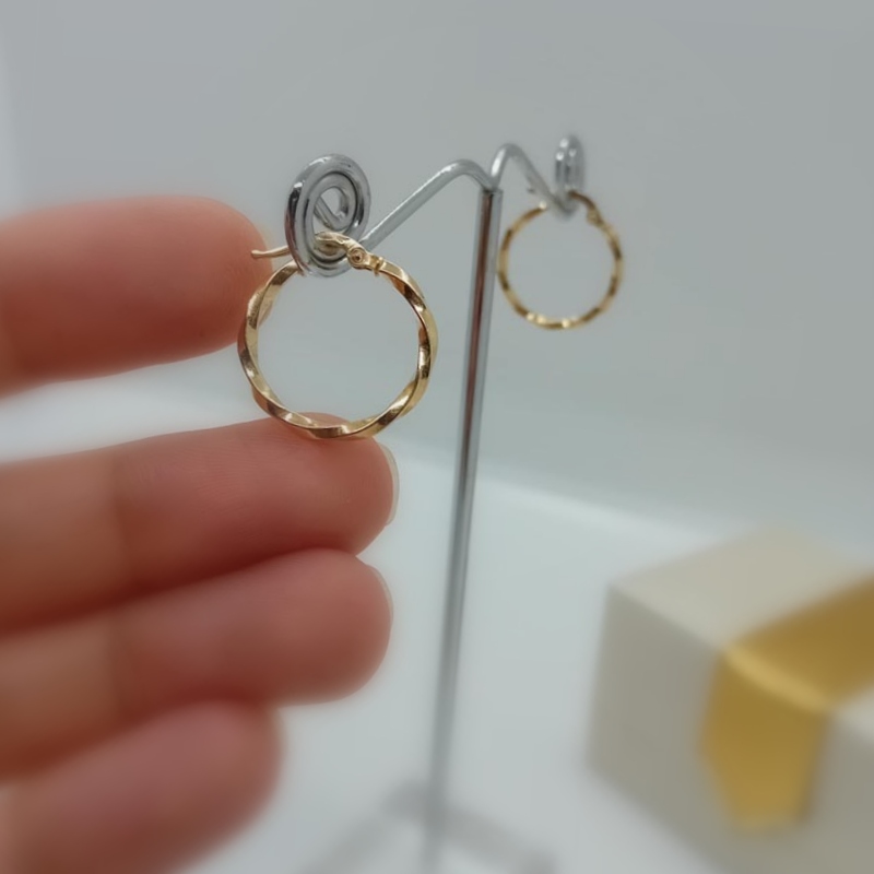 Κομψό διακριτικό μέγεθος, από χρυσό 14 ΚΑΡΑΤΙΩΝ, στριφτό design, υπέροχα σκουλαρίκια για πρωί και βράδυ !