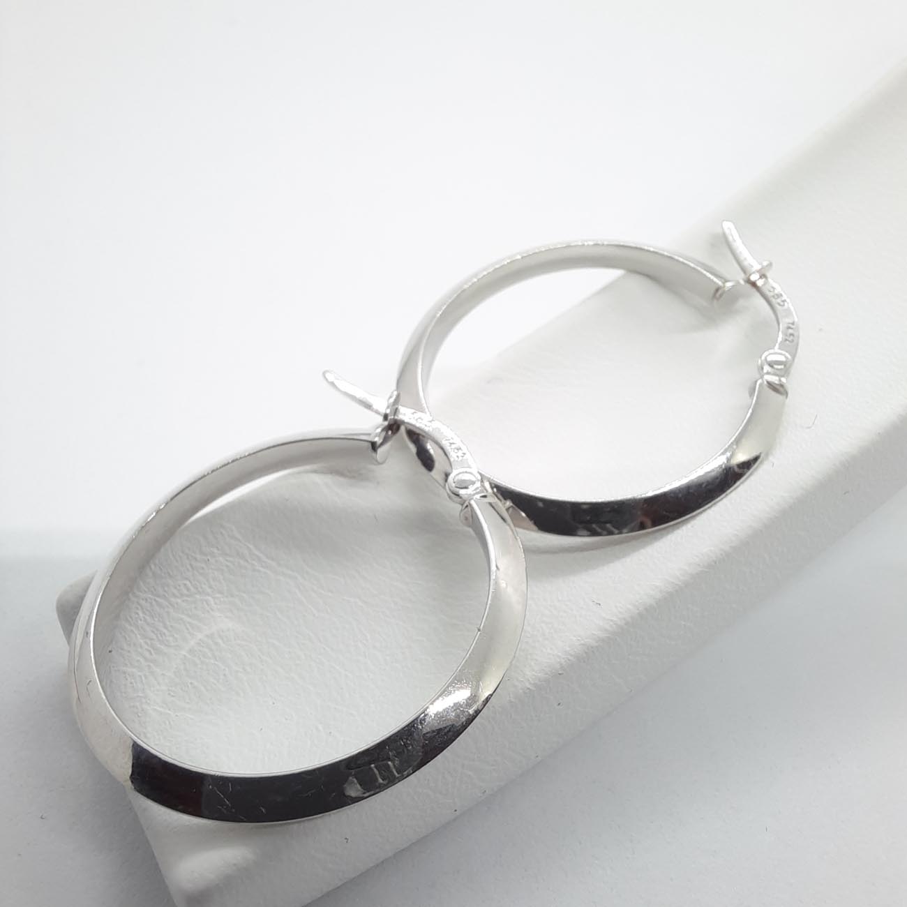 Πολύ κομψοί κρίκοι από λευκόχρυσο 14 καρατίων με ιδαίτερο design και ιδανικό μέγεθος, ευκολοφόρετα πρωί βράδυ!