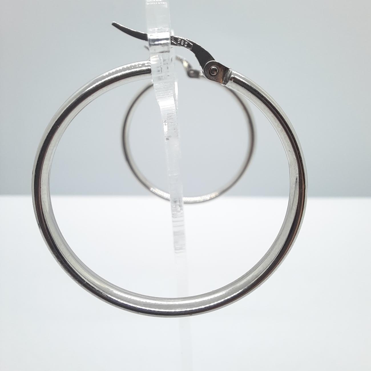 Κομψοί κρίκοι από λευκόχρυσο 14 καρατίων, με φαρδιά επιφάνεια , διαχρονικοί και μοντέρνοι.