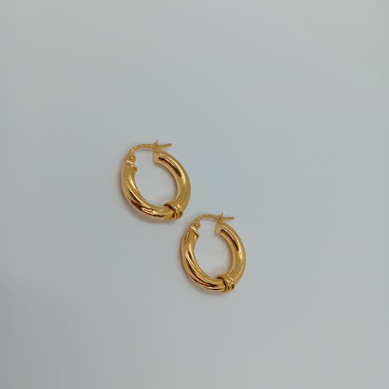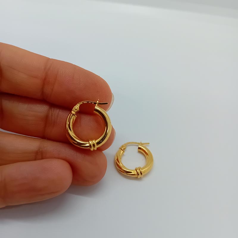 Ταιριάζουν με κάθε στυλ και σε κάθε ηλικία! Χρυσά κρικάκια, μικρά, σε φαρδιά γραμμή με διακριτικό σχέδιο, από χρυσό Κ9.