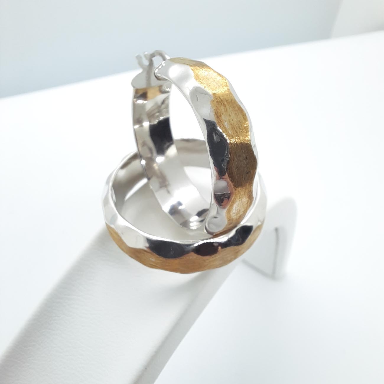 Εντυπωσιακά και πολύτιμα αυτά τα σκουλαρίκια 14 καρατίων από λευκόχρυσο λαμπερό λουστρέ με φαρδιά χρυσή ρίγα από ζαγρέ χρυσό , κολακεύουν απόλυτα μελαχρινές, καστανές και ξανθές γυναίκες και αποτελούν το ιδανικό κόσμημα για την νύφη ή την κουμπάρα!