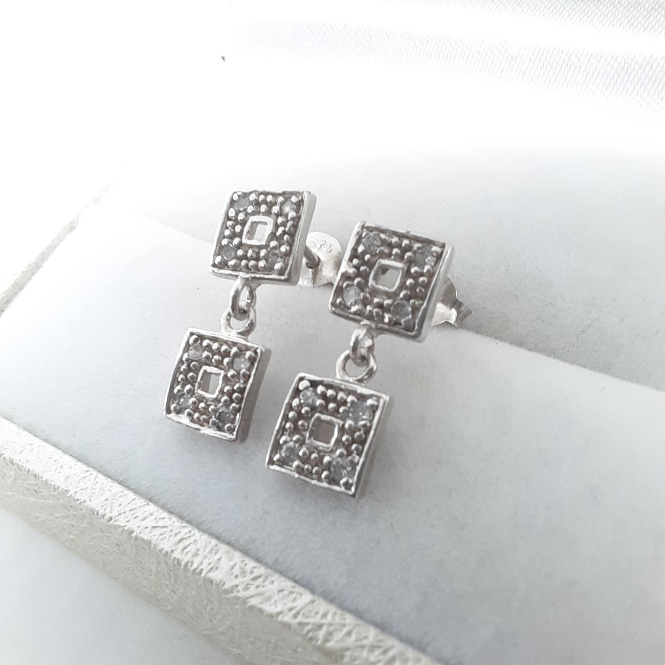Γιαννιώτικη τεχνοτροπία, παραδοσιακής ομορφιάς, κρεμαστά σκουλαρίκια από ασήμι 9.25 με μικρά λευκά ζιργκόν.