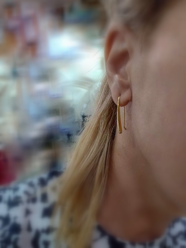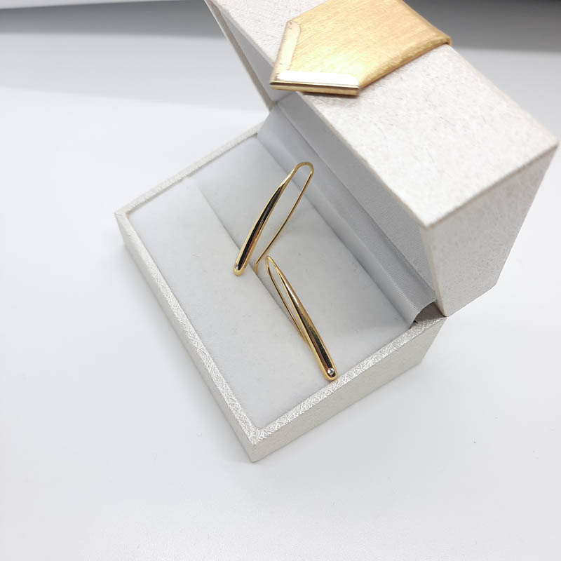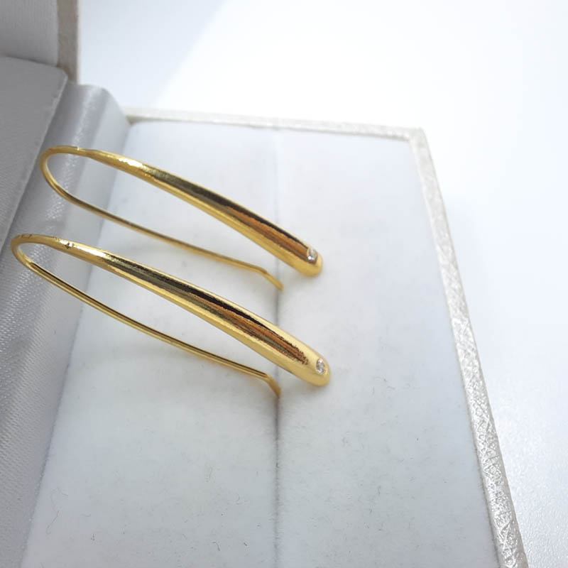 Μοντέρνο design μακρόστενα σκουλαρίκια για την γυναίκα που αγαπά το λιτό αλλά εντυπωσιακό στυλ, από επιχρυσωμένο ασήμι, με λευκό διακριτικό ζιργκόν στην άκρη τους.
