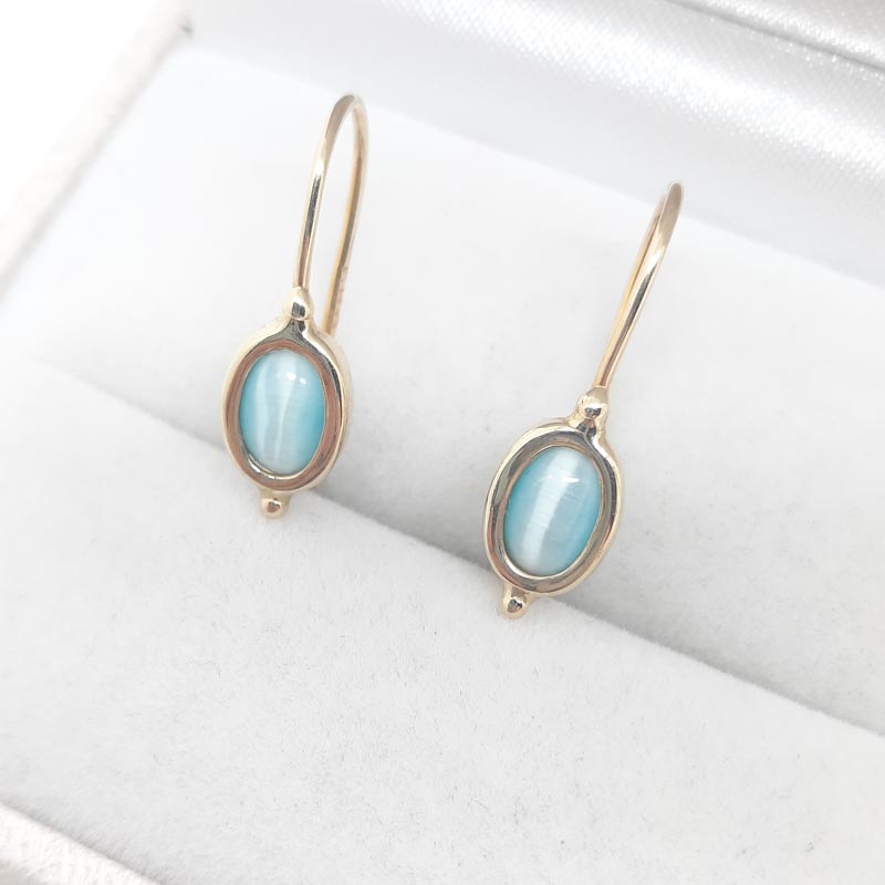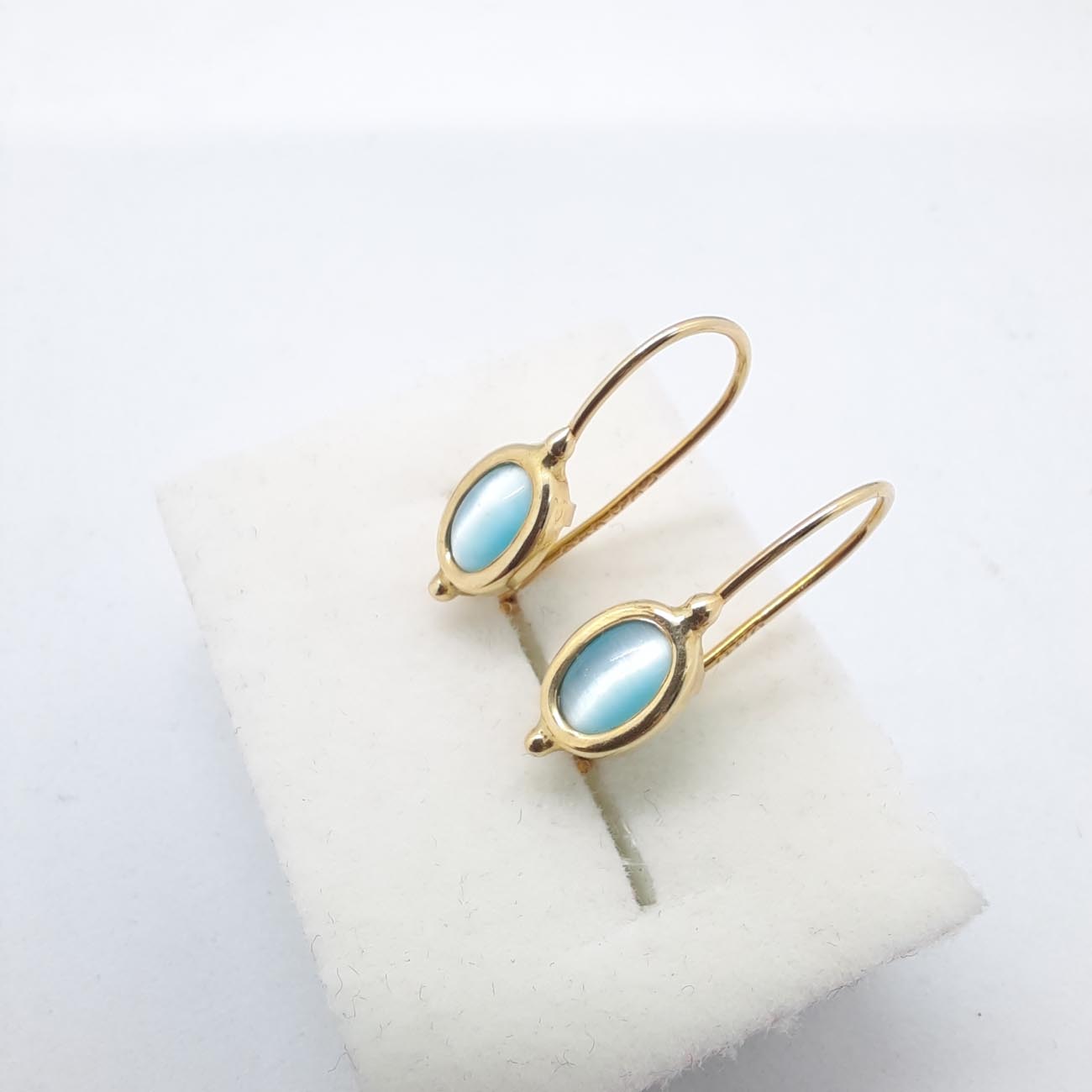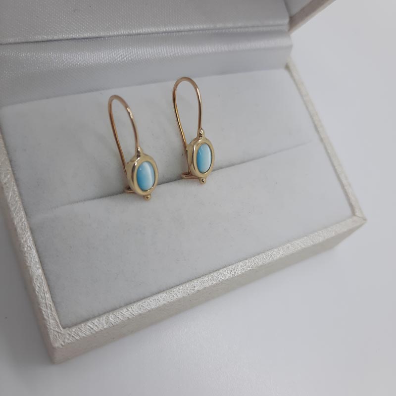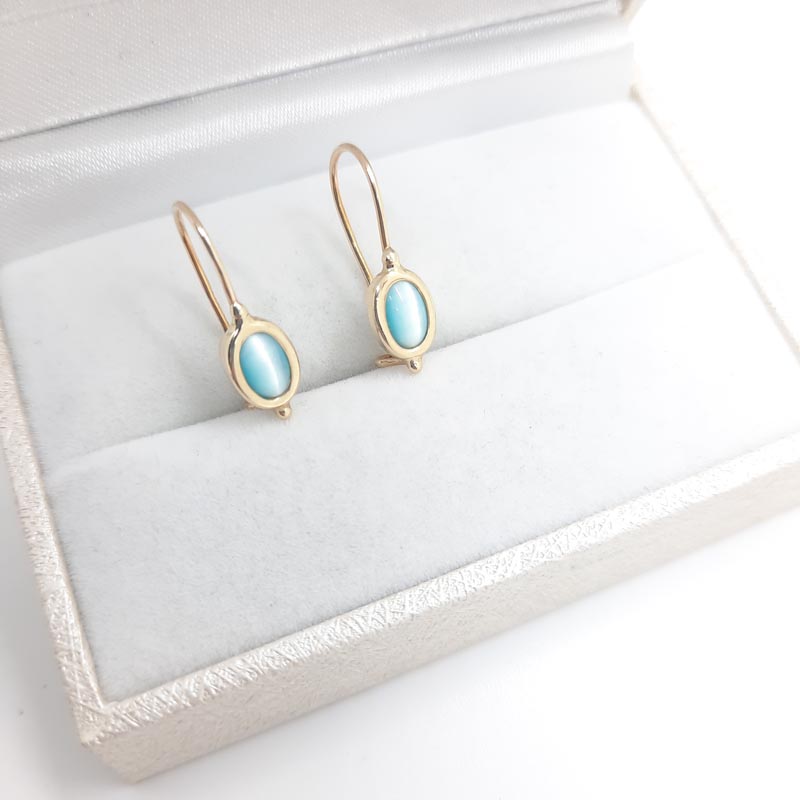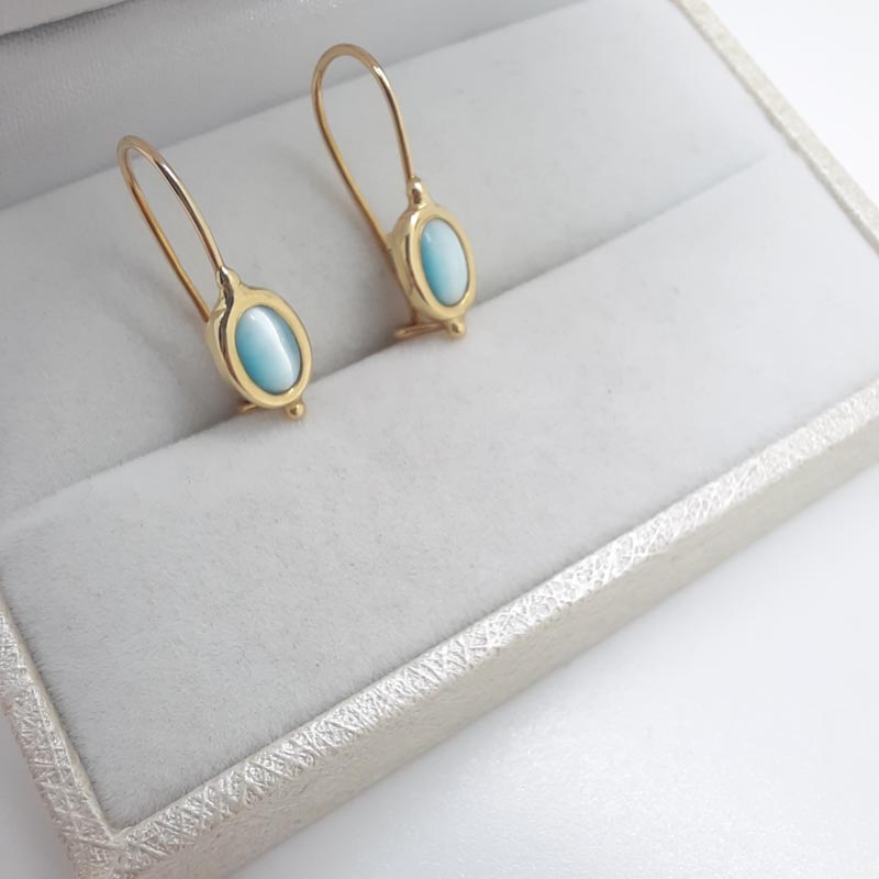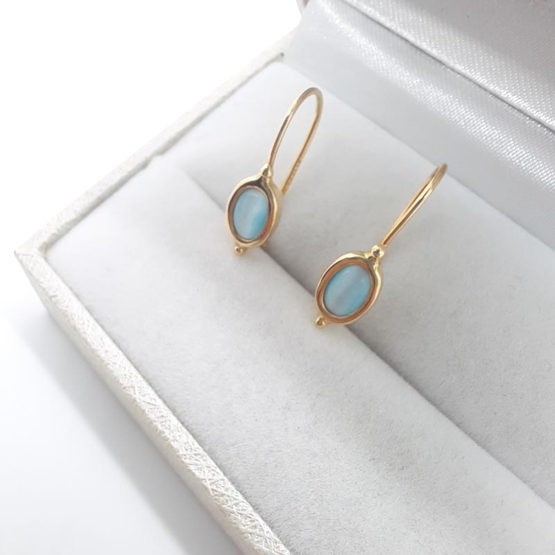 All time classic χρυσά σκουλαρίκια σε οβάλ σχήμα, γαλάζια, με την χαρακτηριστική λάμψη της ακουαμαρίνας, από χρυσό 14 καρατίων, πολύ όμορφα για όλες τις ηλικίες!