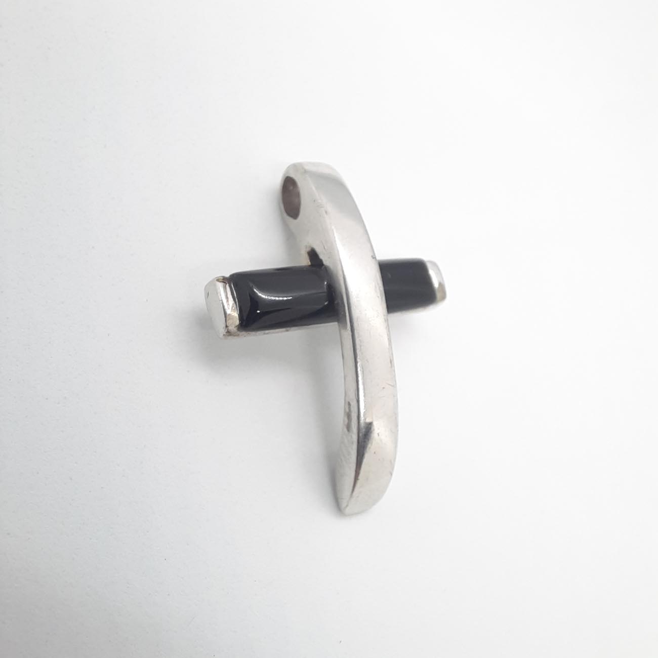 Πολύ μοντέρνος αντρικός σταυρός από ασήμι μασίφ 9.25 , με μαύρη οριζόντια πλευρά για μια πιο ιδιαίτερη ροκ σκληρή όψη.