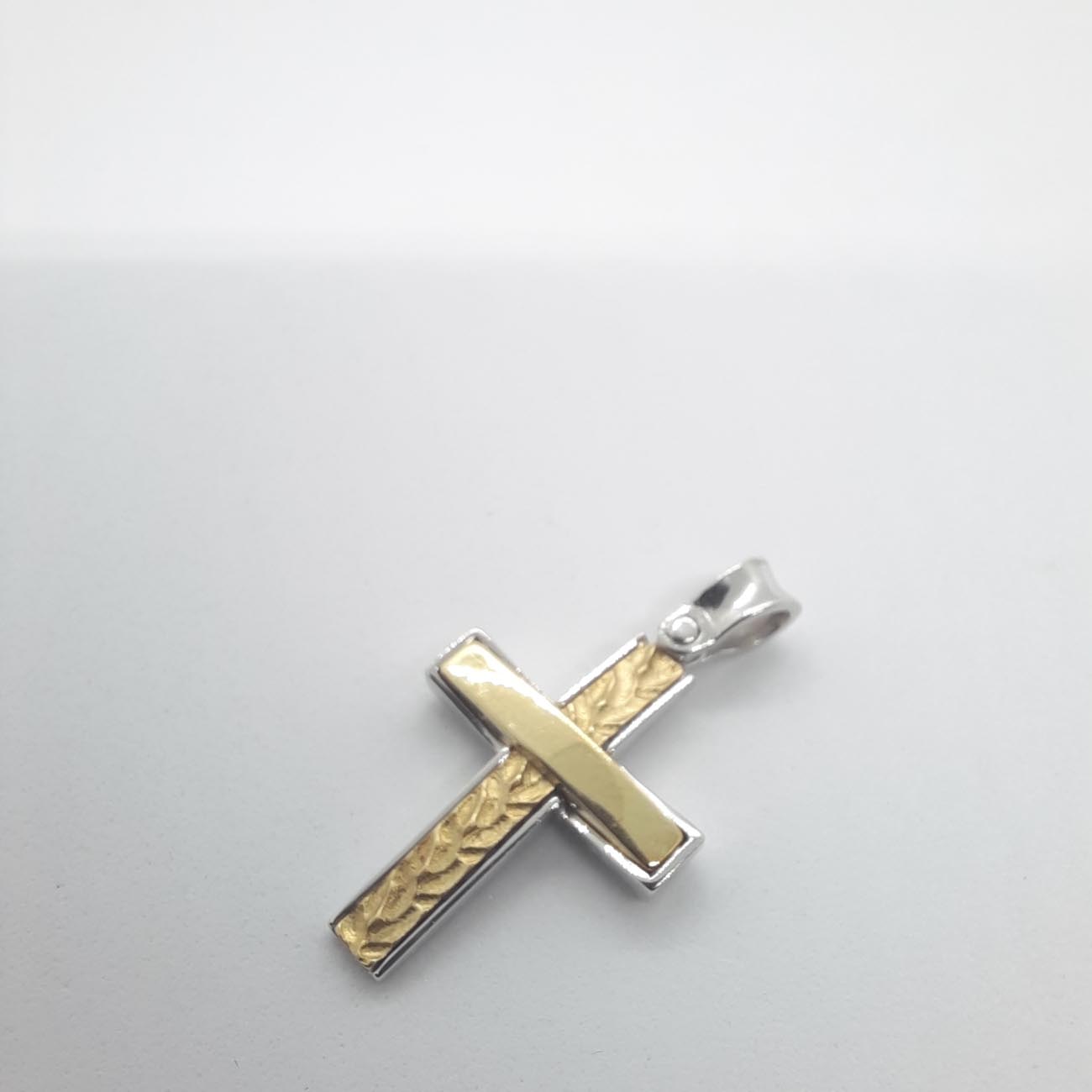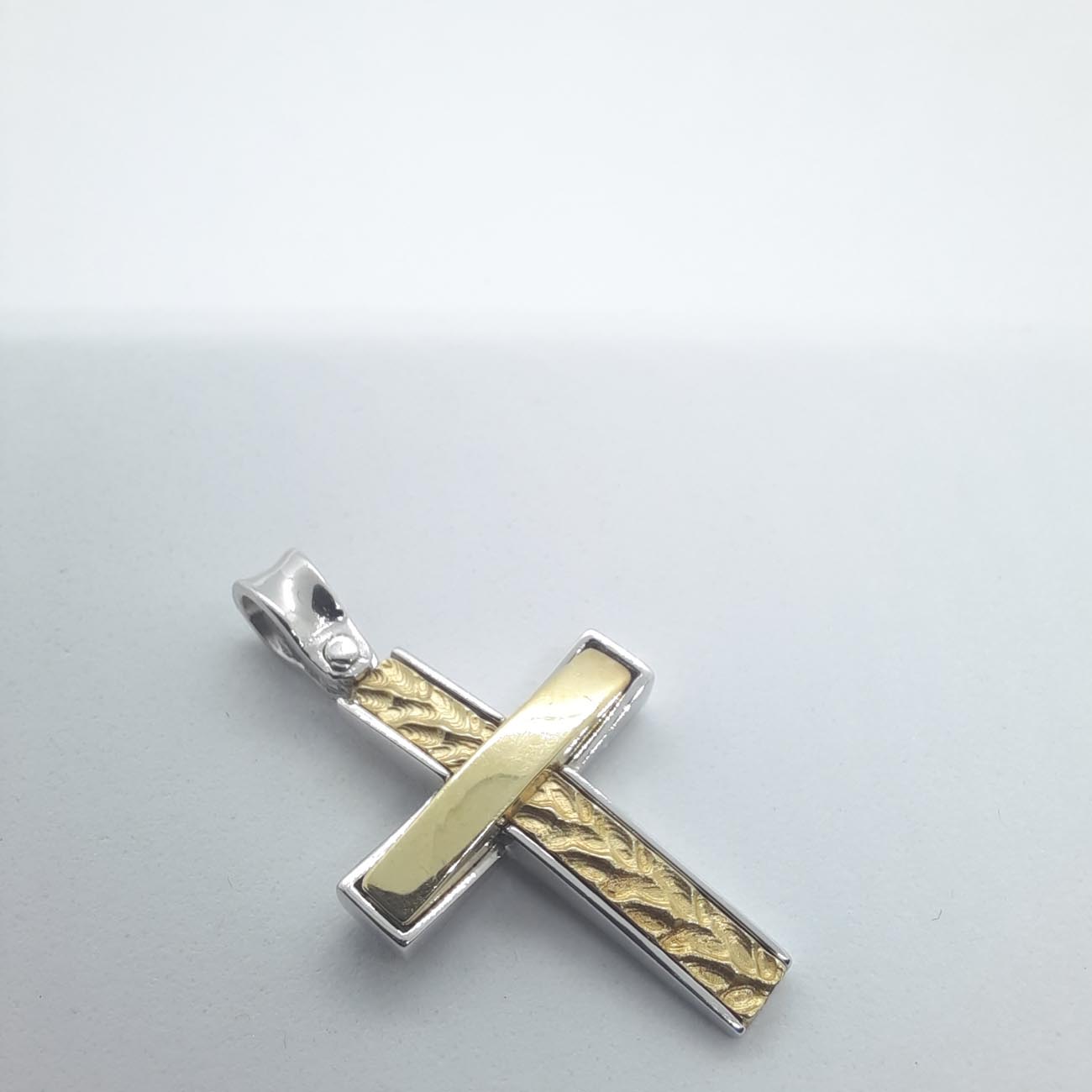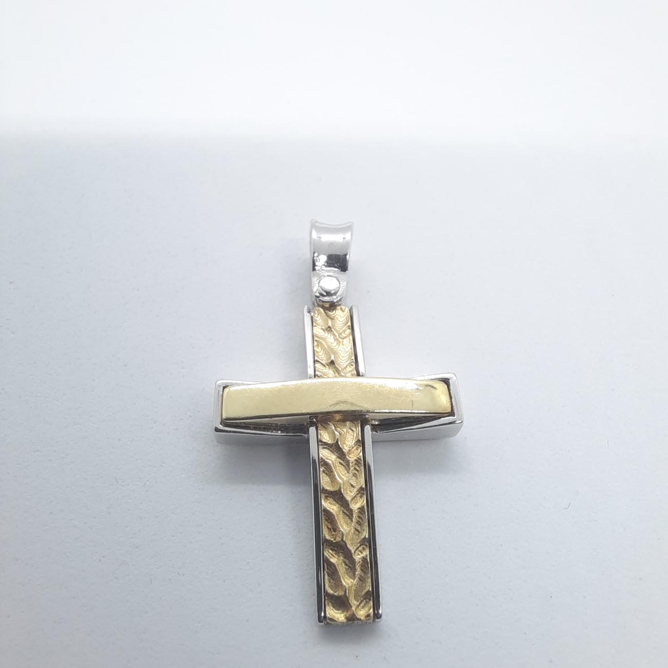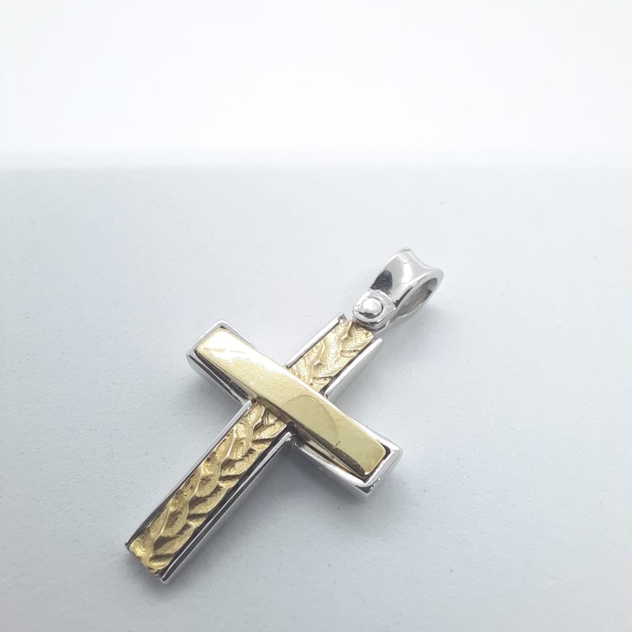 Λευκόχρυσος σταυρός Κ14 με χρυσό κομμάτι μασίφ στο κέντρο