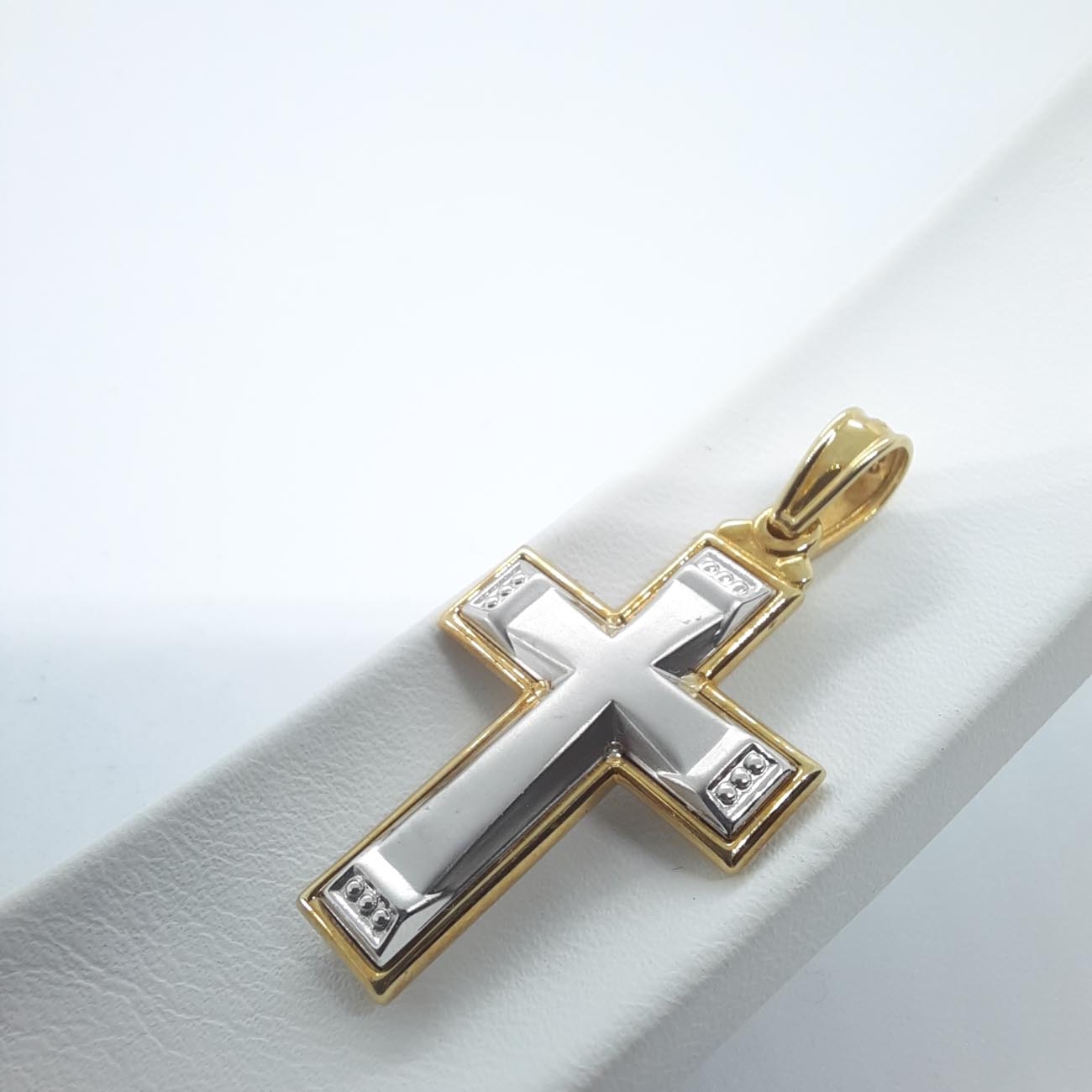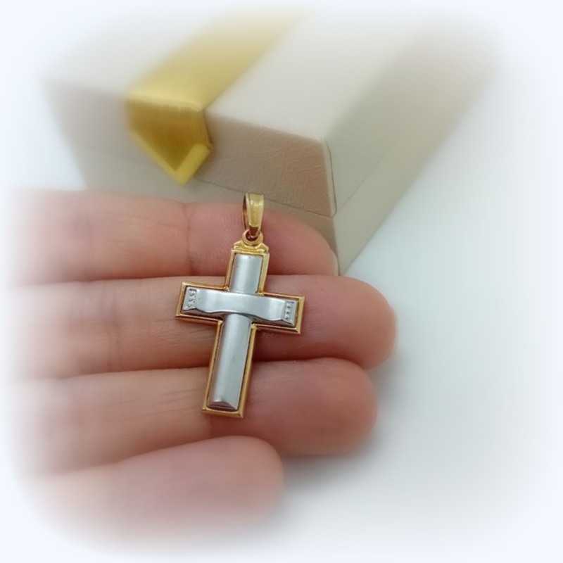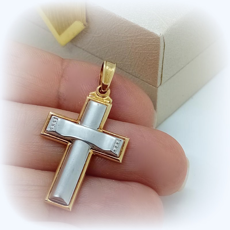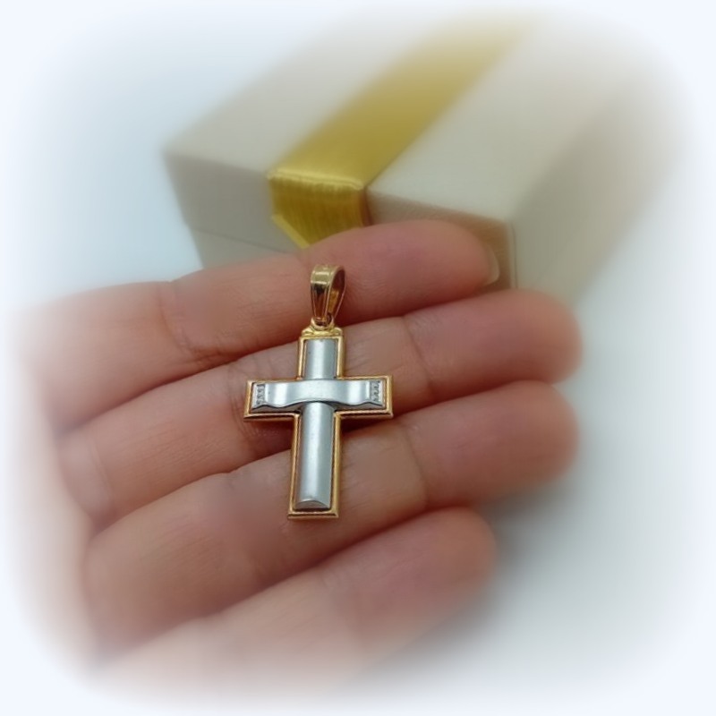 Ένας εκπληκτικός σταυρός unisex από λευκόχρυσο , ματ επεξεργασία, με διακριτικό σκάλισμα στην οριζόντια γάμπα και αστραφτερό φινίρισμα από χρυσό. Ένα κόσμημα διαχρονικού design, σε μίνιμαλ μοντέρνο στυλ, ιδανικός για βάπτιση μπέμπη ή μπέμπας!