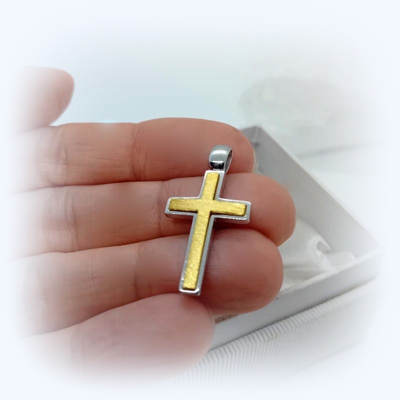 Πολύ όμορφος σταυρός από ασήμι με επιχρυσωμένη ζαγρέ λαμπερή μπροστινή όψη και μεγάλο κρίκο, ιδανικά φοριέται και από άντρα και από γυναίκα.