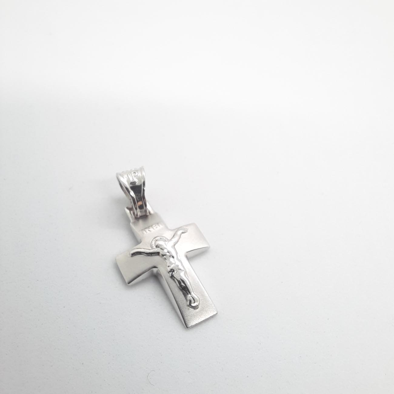 Πανέμορφος σταυρός διακριτικό μέγεθος λευκόχρυσος 14 καρατίων ματ όψης με λουστρέ ανάγλυφο Εσταυρωμένο, ιδανικό δώρο για τον αγαπημένο μας, σύμβολο πίστης , αγάπης, αφοσίωσης. FASHION TIP : συνδυάστε το εξίσου όμορφα με λευκόχρυση αλυσίδα ή δερμάτινο λουράκι για μια πιο ροκ άποψη.