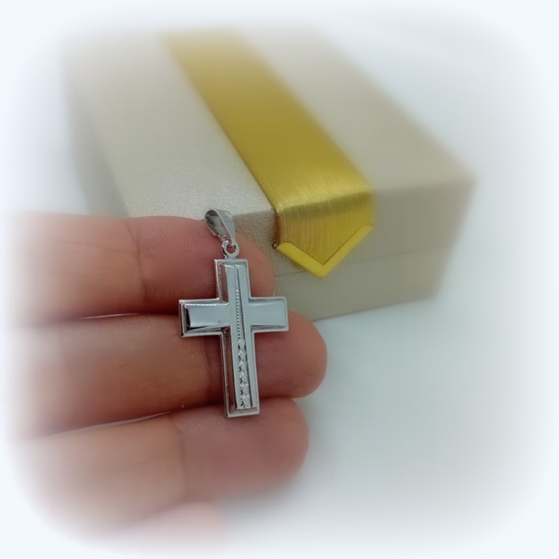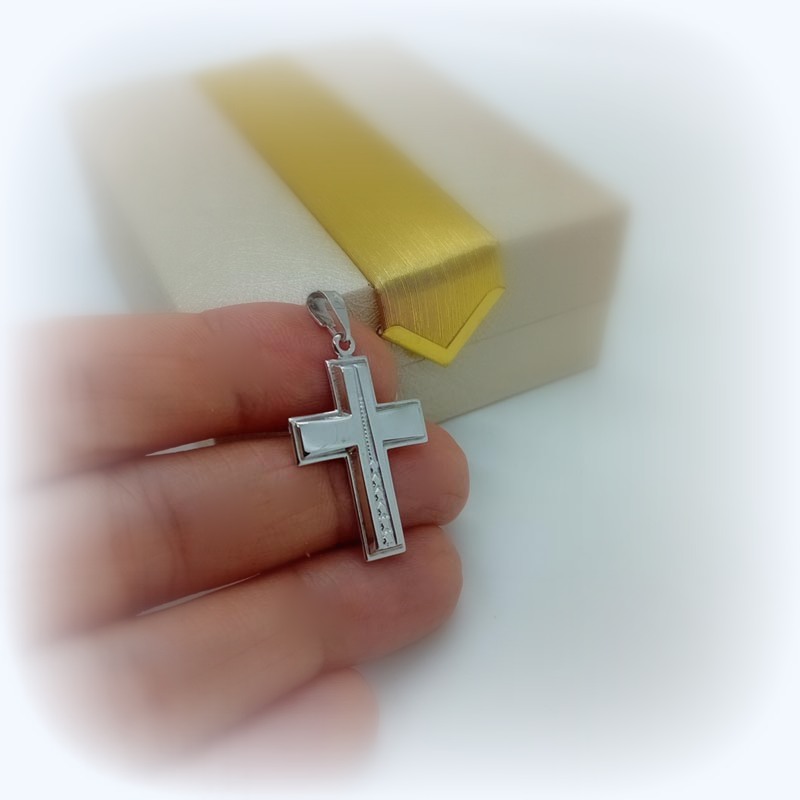 Σταυρός λευκόχρυσος K9 με χάραξη