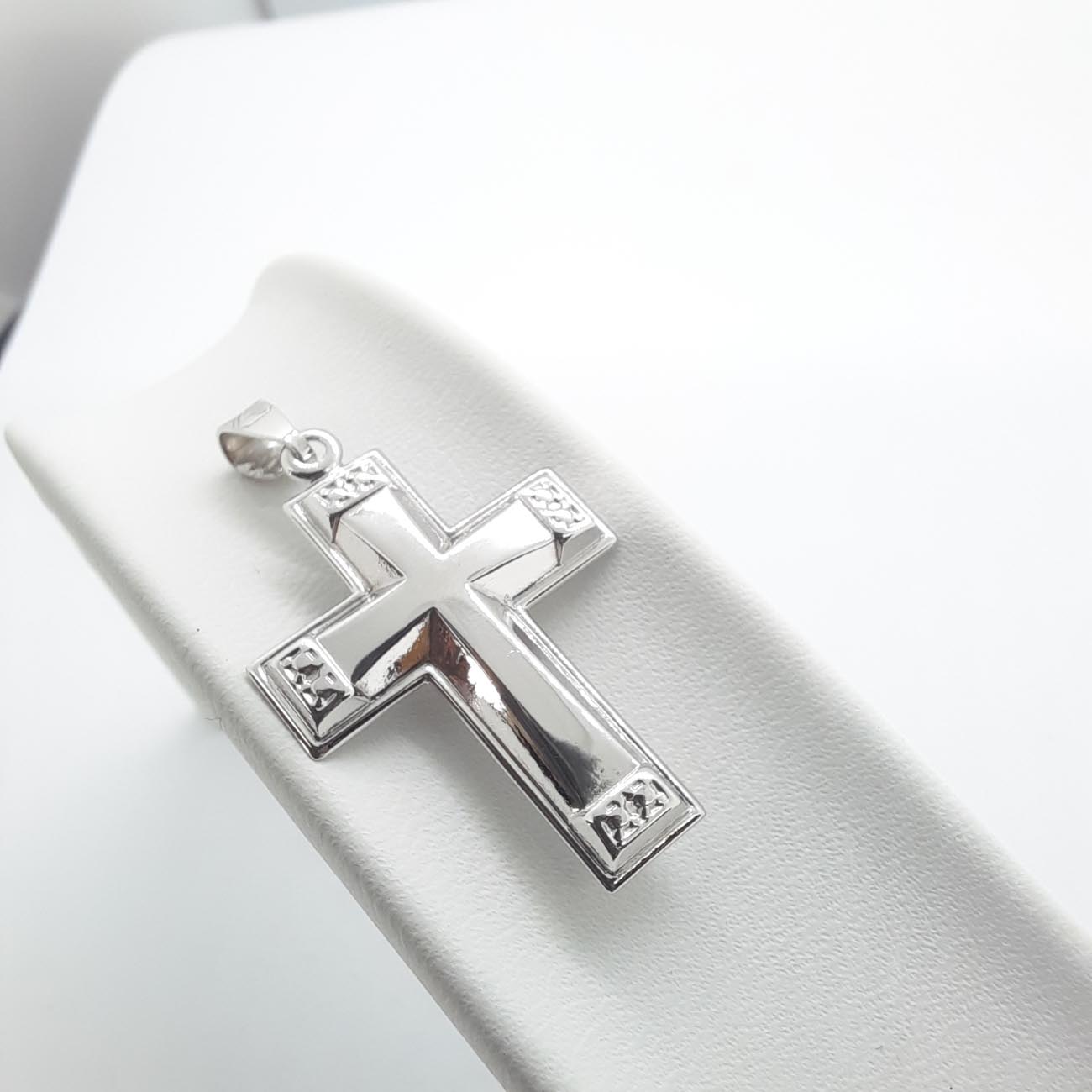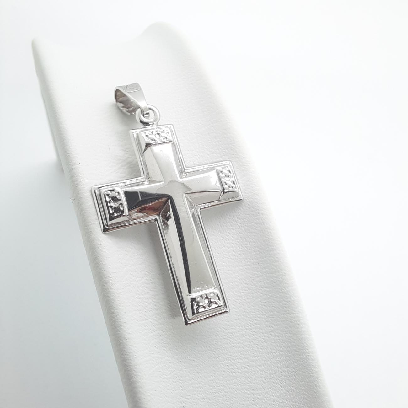 Πόσο όμορφος πραγματικά αυτός ο βαπτιστικός σταυρός από λευκόχρυσο με κομψές διακριτικές σκαλιστές λεπτομέρειες στις 4 άκρες του, unisex, για την νονά και τον νονό που προτιμούν την λιτή κλασική ομορφιά.
