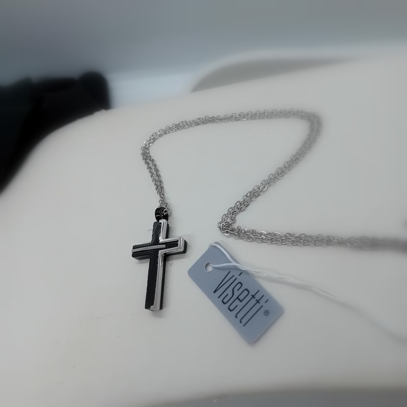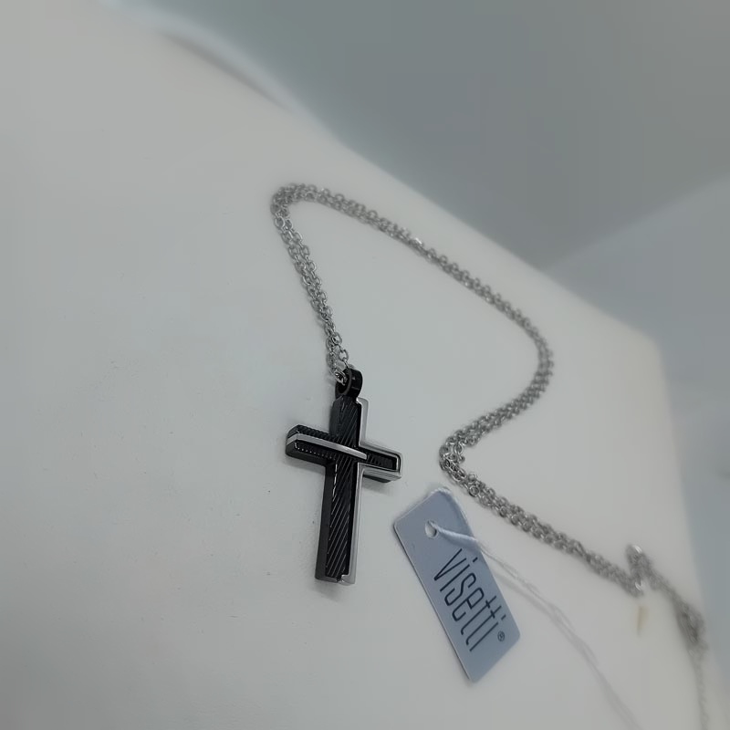 Σταυρός αντρικός εντυπωσιακός από μαύρο ατσάλι με την αλυσίδα του, μάρκα VISSETI.