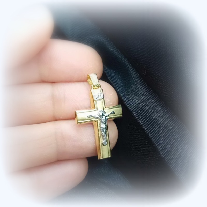 Σταυρός χρυσός unisex K9 με ΕΣΤΑΥΡΩΜΕΝΟ ΙΗΣΟΥ