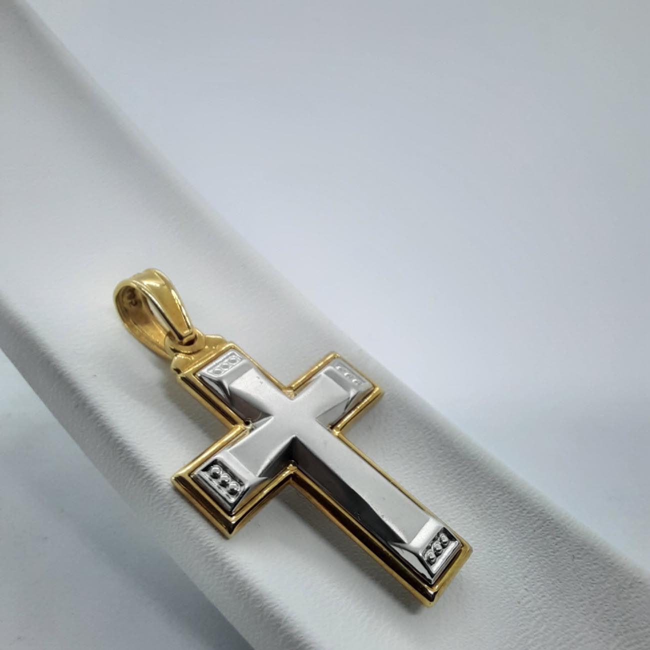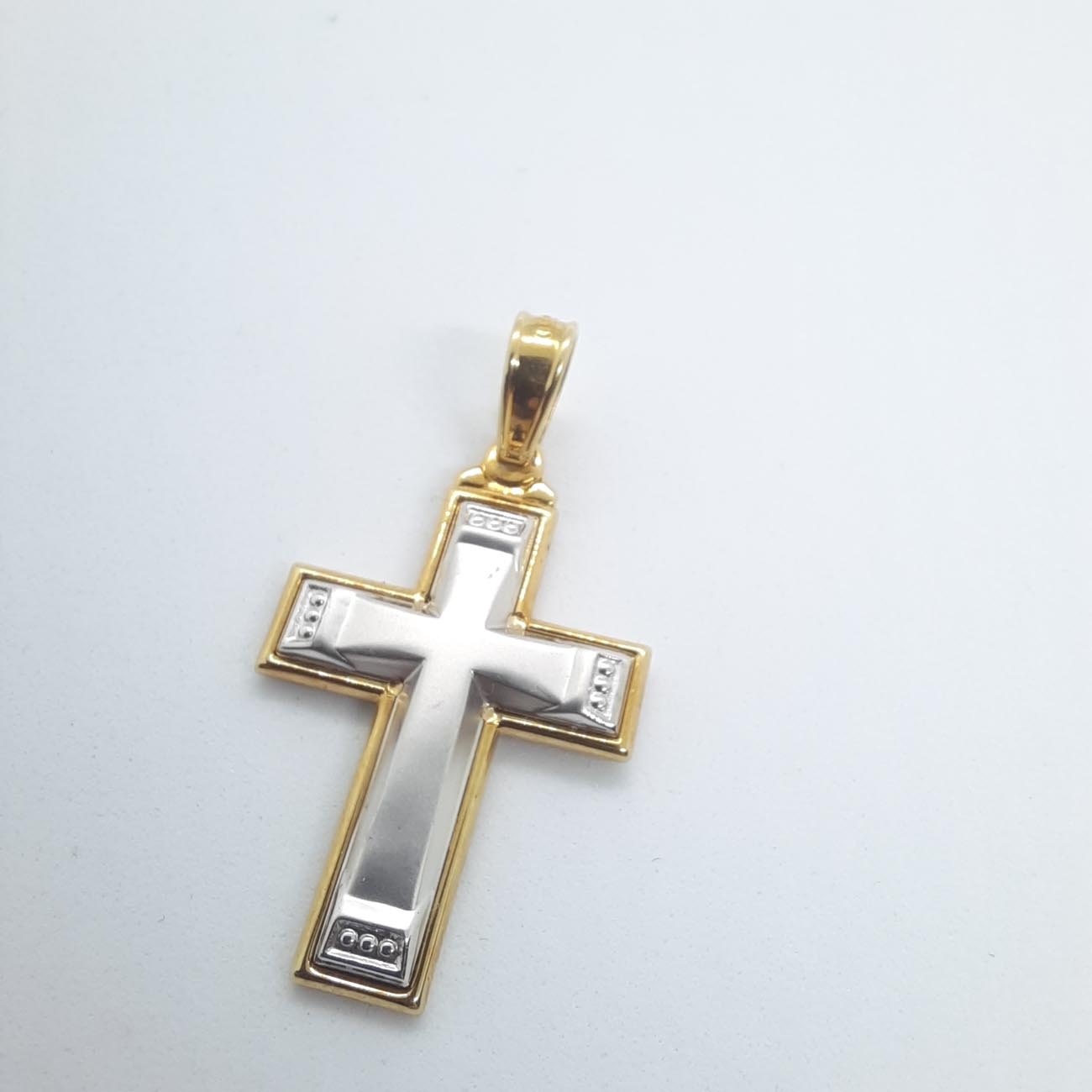 Εκπληκτικός βαπτιστικός σταυρός , συνδυασμός χρυσού με λευκόχρυσου, 14 καρατίων, με πολύ όμορφες σκαλιστές λεπτομέρειες, μια τέλεια επιλογή που θα φορεθεί σε όλη του την ζωή χαρίζοντάς του ευλογία.