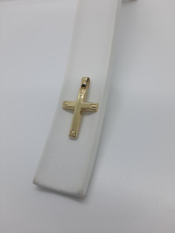 Σε λιτή γεωμετρική γραμμή, από χρυσό 14 καράτια, ανδρικός όμορφος σταυρός για δώρο και για βάπτιση.
