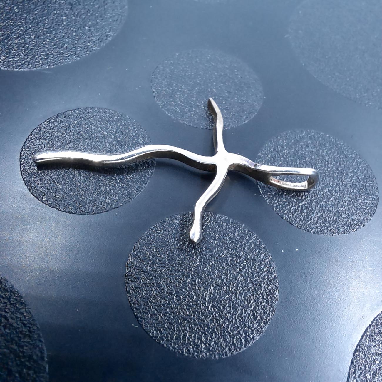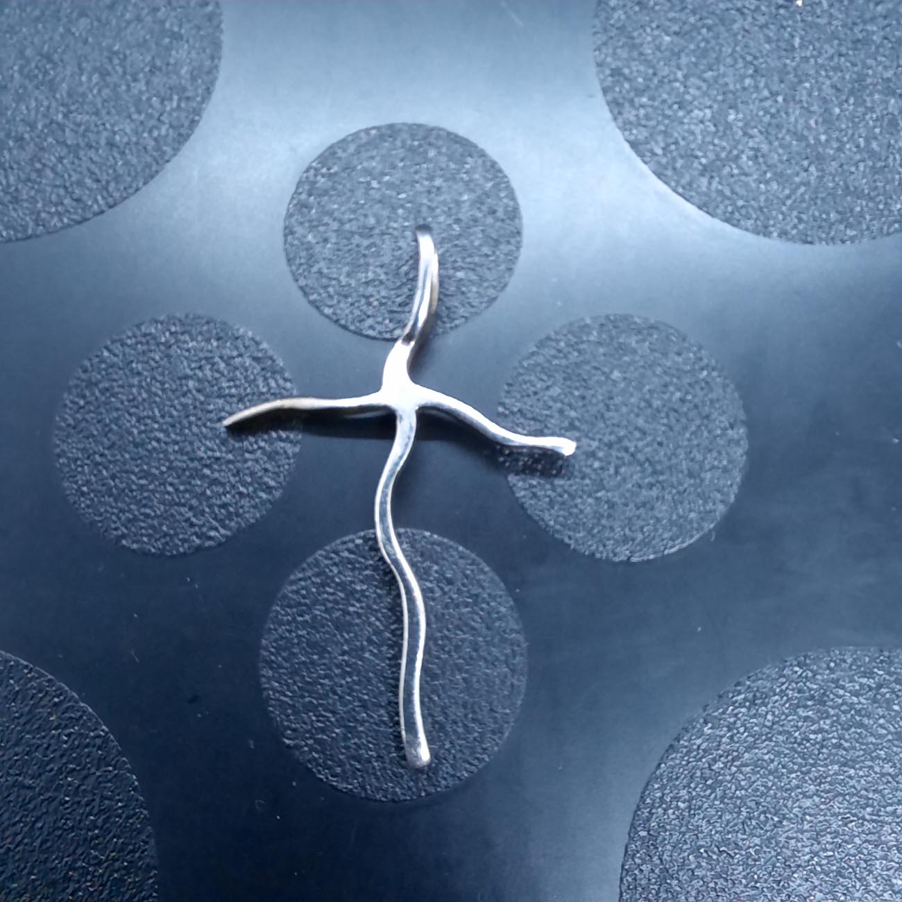 Ασημένιος σταυρός με χαρακτηριστική κυματοειδή όψη , για ένα ιδιαίτερα μοντέρνο look μίνιμαλ αισθητικής.