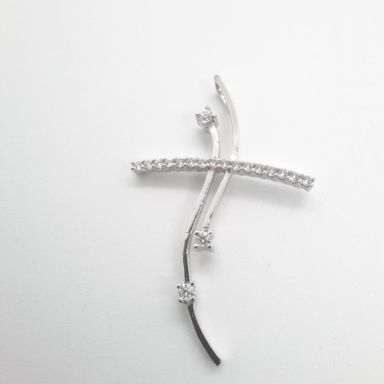 Χολυγουντιανή λάμψη και πολυτέλεια αποπνέει αυτός ο υπέροχος σταυρός, με το επιβλητικό μέγεθός του και το πολύ καλλιτεχνικό design, με την οριζόντια γάμπα γεμάτη από λευκά ζιργκόν και δύο κάθετες γάμπες με 3 λευκά ζιργκόν και πολύ θηλυκές καμπύλες. Ιδανικό δώρο αρραβώνα, γάμου, επετείου και σε κάθε σημαντική στιγμή στην ζωή σας.