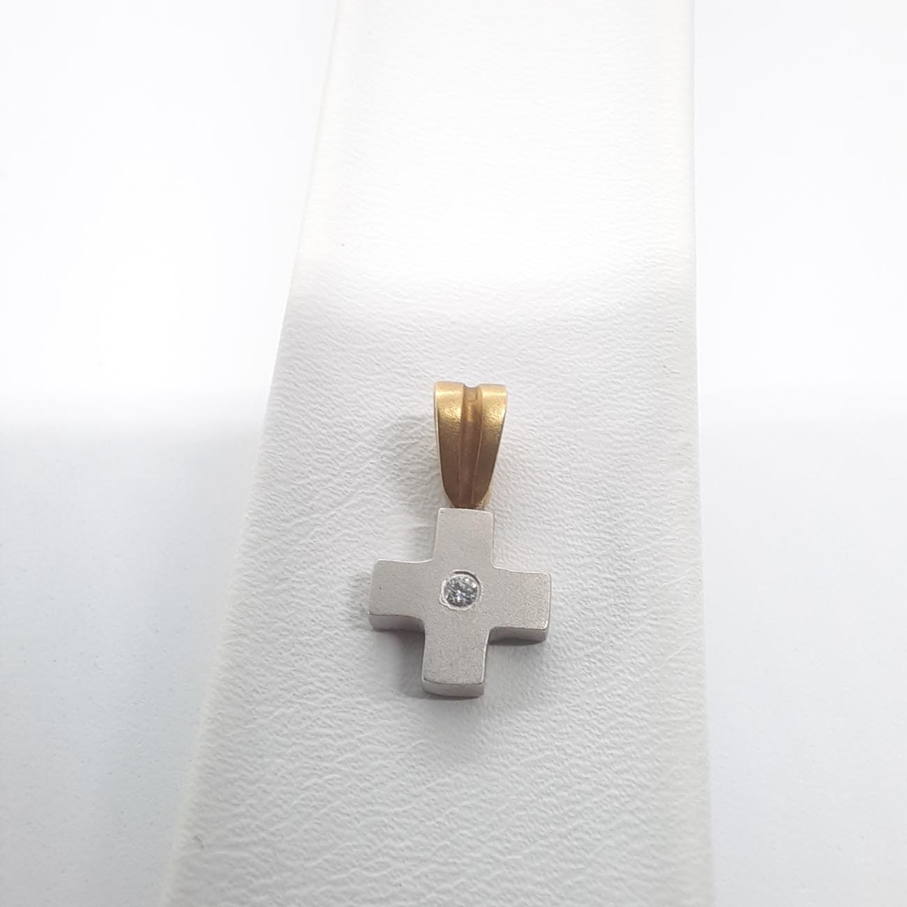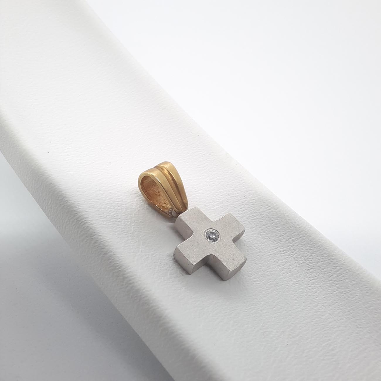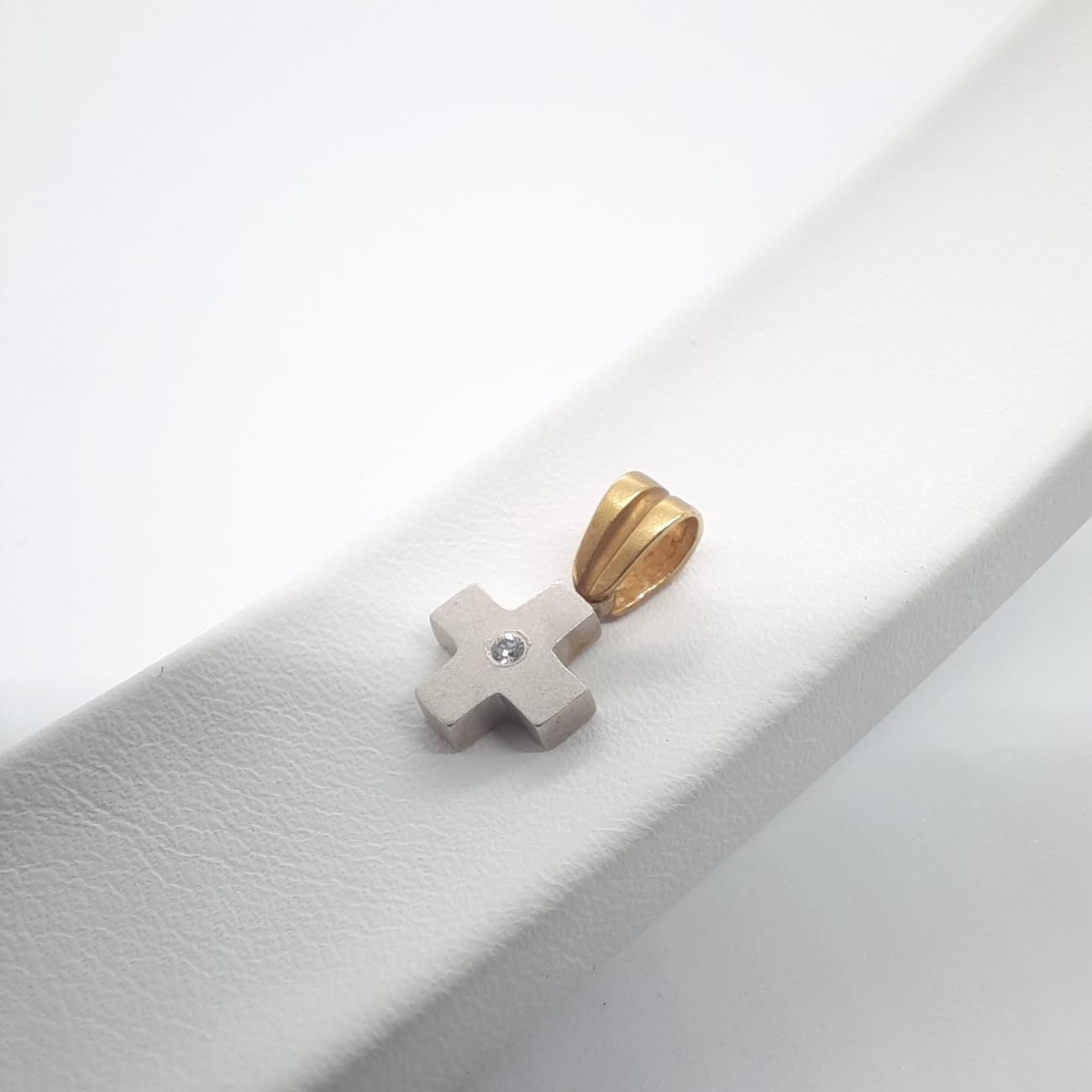 Ένας υπέροχος και διακριτικός μικρός σταυρός στο ντεκολτέ σας! Από λευκόχρυσο ματ επεξεργασίας, 14 καράτια, με κεντρικό λευκό ζιργκόν και χρυσό εντυπωσιακό κρικάκι, ένα διαχρονικό κόσμημα, μοντέρνο και νεανικό. FASHION TIP : συνδυάζεται όμορφα με χρυσή ή λευκόχρυση αλυσίδα και ταιριάζει με όλα σας τα κοσμήματα και σε κάθε περίσταση, επαγγελματική ή επίσημη!