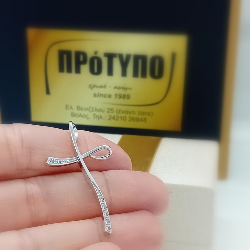 Ντελικάτος σταυρός από λευκόχρυσος σταυρός 14 καράτια, πραγματικό κομψοτέχνημα για την μοντέρνα γυναίκα που εκτιμά την φινέτσα.