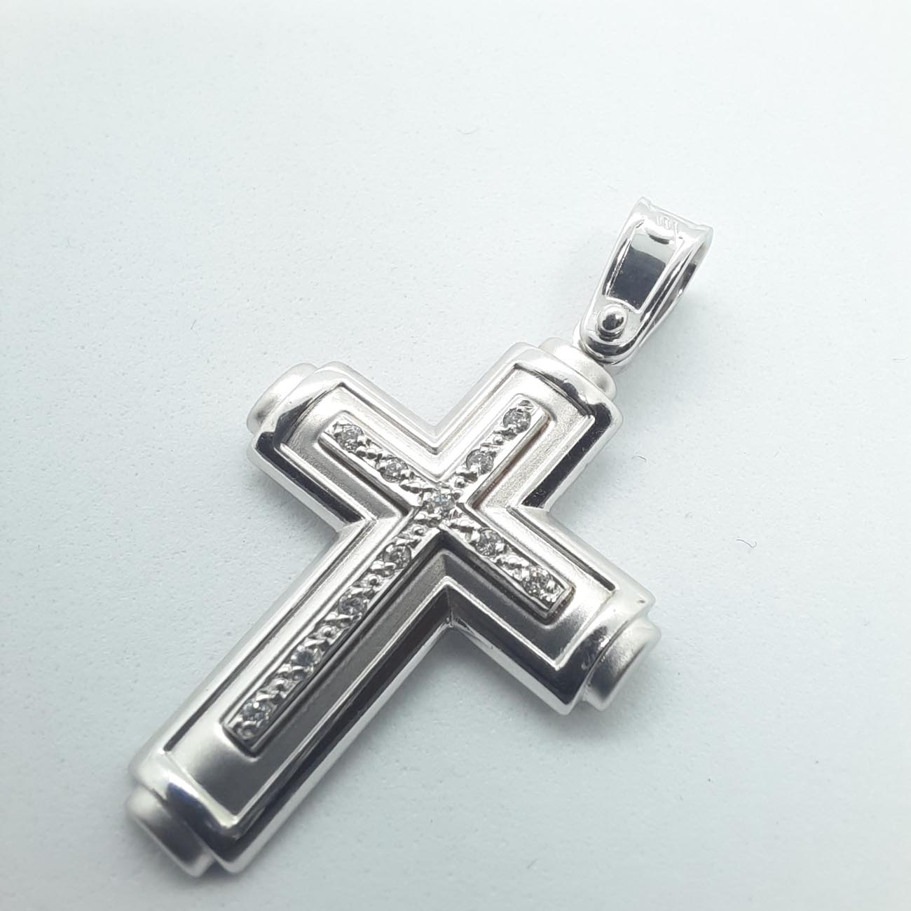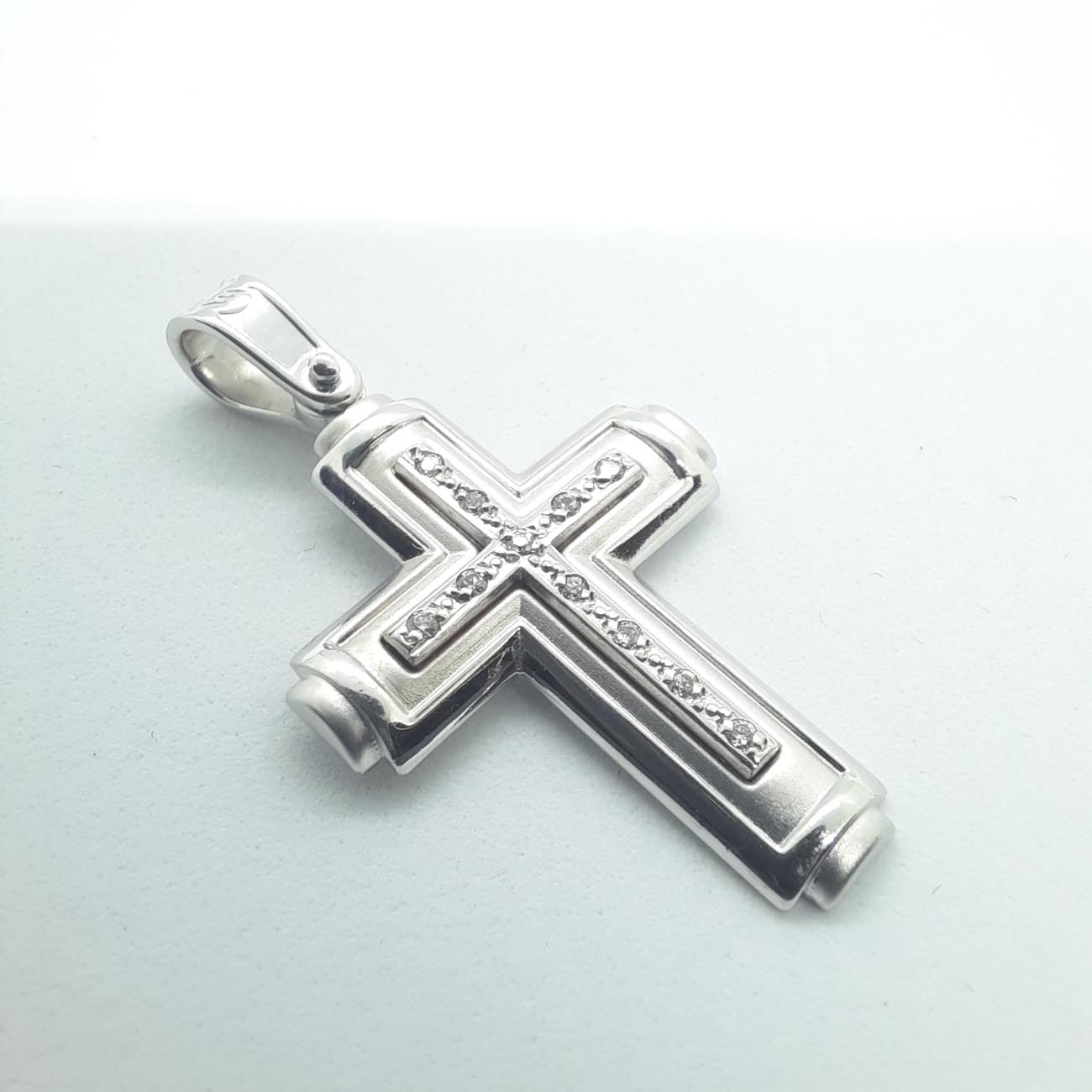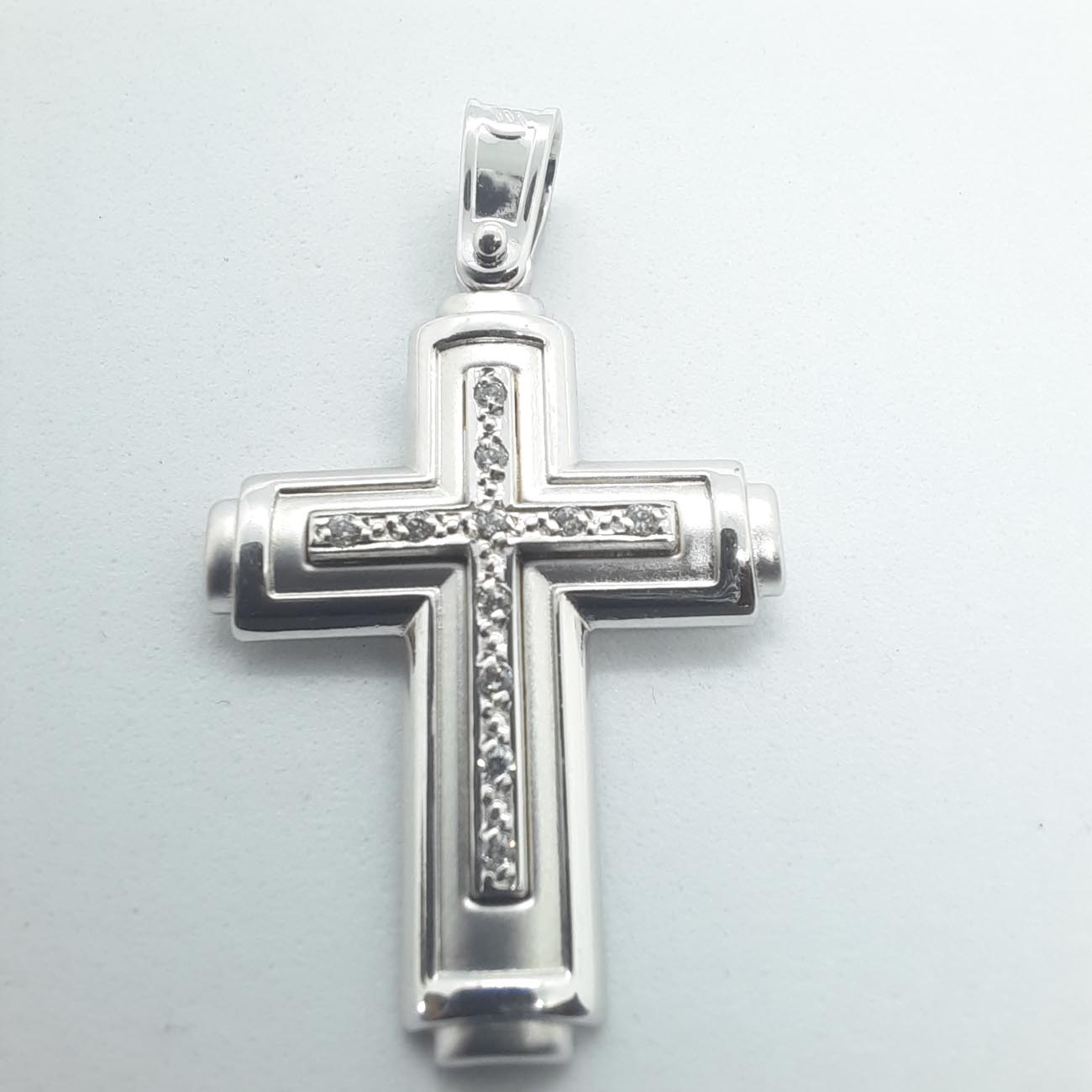 Πανέμορφος και πολύτιμος λευκόχρυσος βαπτιστικός σταυρός για κοριτσάκι, 14 ΚΑΡΑΤΙΩΝ, ματ επιφάνεια, λουστρέ φινιρίσματα και έναν έξτρα σταυρό από ζιργκόν στο κέντρο.