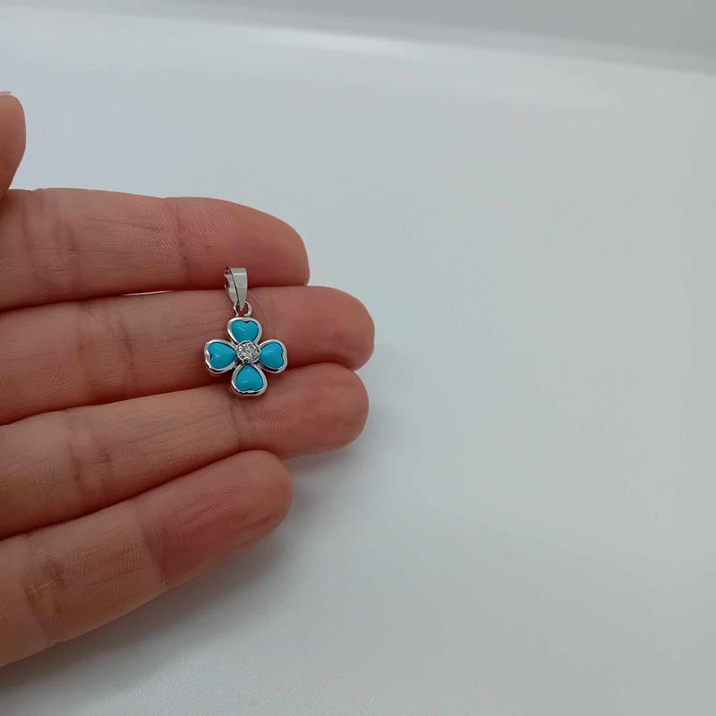 Λευκόχρυσος σταυρός με τυρκουάζ καρδιές