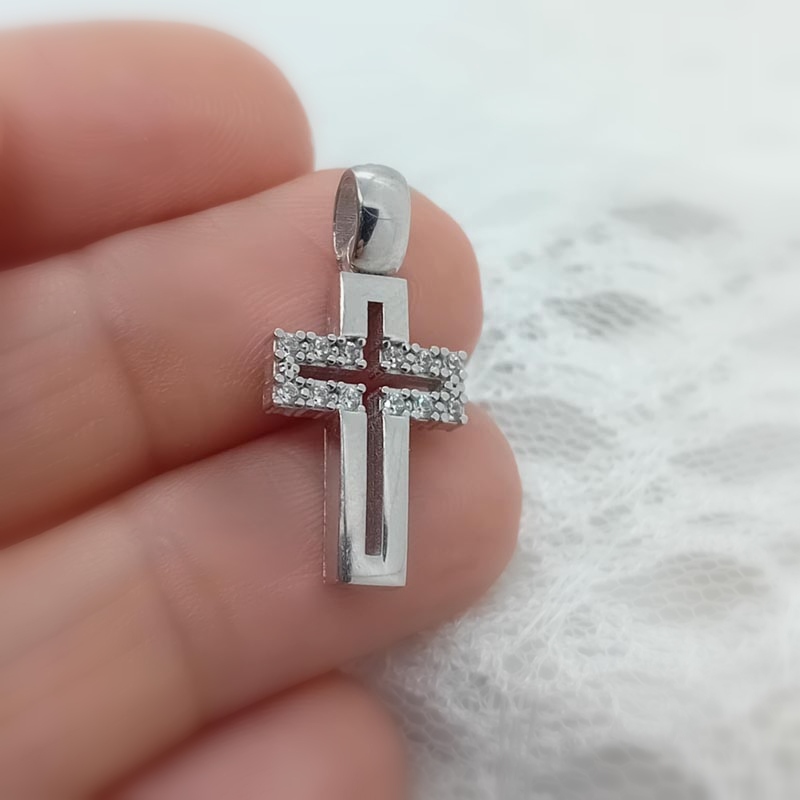 Το καλύτερο δώρο πίστης και αγάπης, με όμορφο διάτρητο design σταυρός από ασήμι 925, λουστρέ όψης, με σειρά ζιργκόν στη κάθετη πλευρά του και φαρδύ μεγάλο κρίκο.