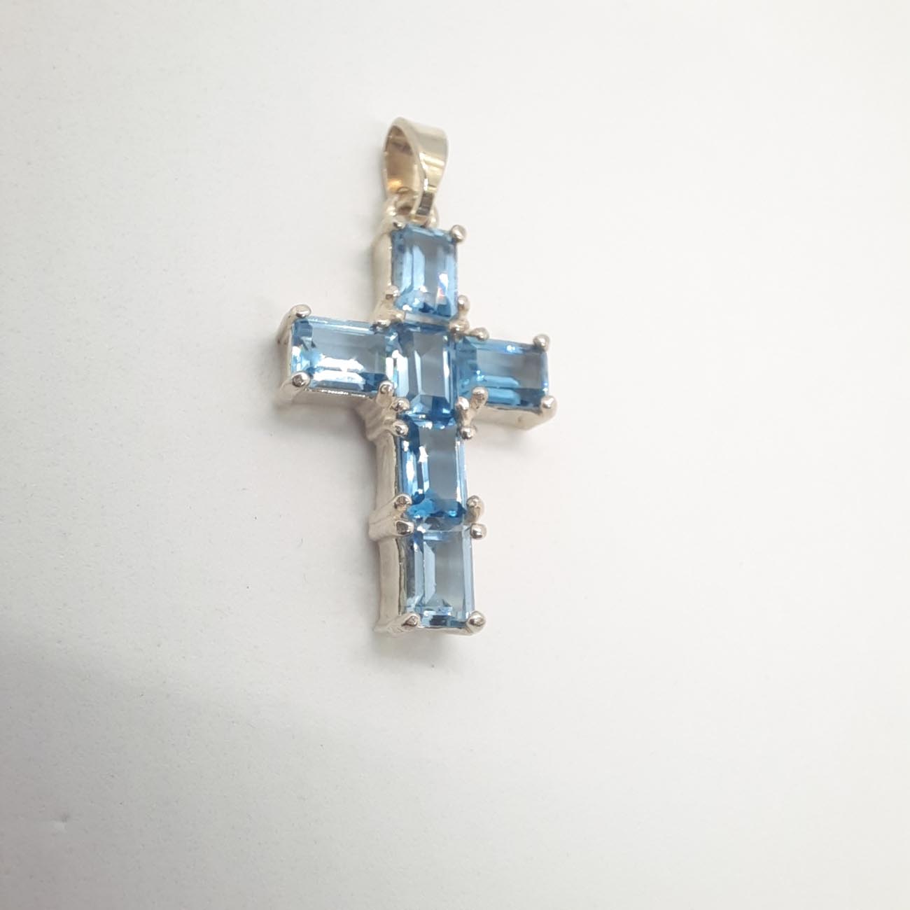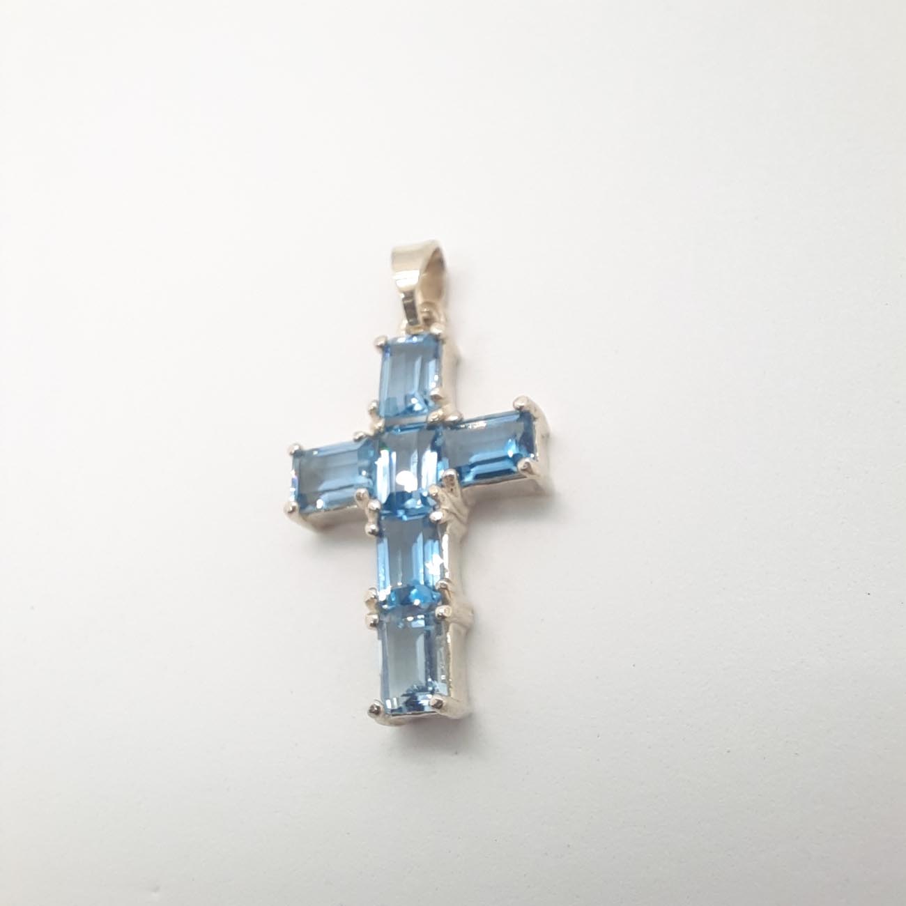 Βάζουμε χρώμα στην καθημερινότητά μας με έναν εντυπωσιακό σταυρό από ασήμι με ζιργκόν σε μπλε απόχρωση .