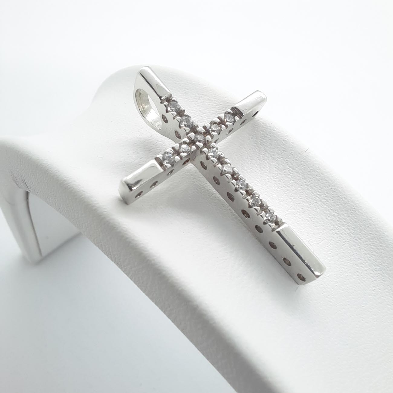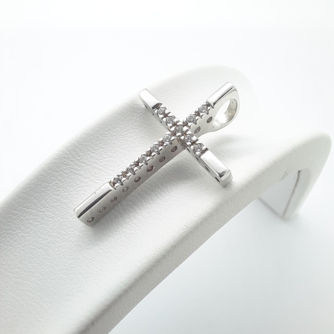 Ένα θαυμάσιο κόσμημα, ένας βαπτιστικός σταυρός ιδιαίτερης ομορφιάς από λευκόχρυσο με 14 καράτια, κομψές μοντέρνες λεπτομέρειες και αφθονία λευκών ζιργκόν , ένα αστραφτερό κόσμημα διαχρονικής αξίας, ιδανικό και για δώρο αρραβώνα, επετείου, αποφοίτησης και όλωνς των πολύτιμων στιγμών της ζωής μας.