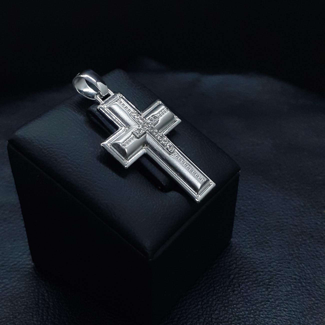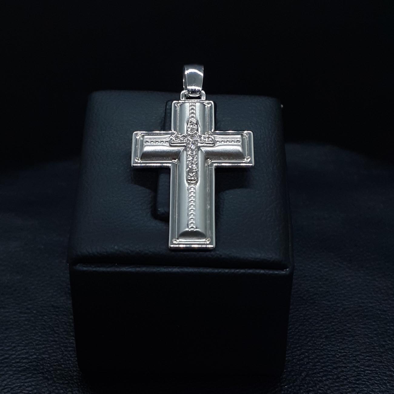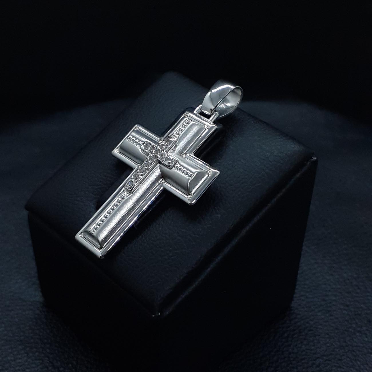 Υπέροχος βαπτιστικός σταυρός για κοριτσάκι , ιδιαίτερα κομψή όψη ,περίτεχνα επεξεργασμένος με έναν μικρότερο πανέμορφο σταυρό από ζιργκόν στην μπροστινή όψη, ένα ιδανικό δώρο αγάπης και ευλογίας.