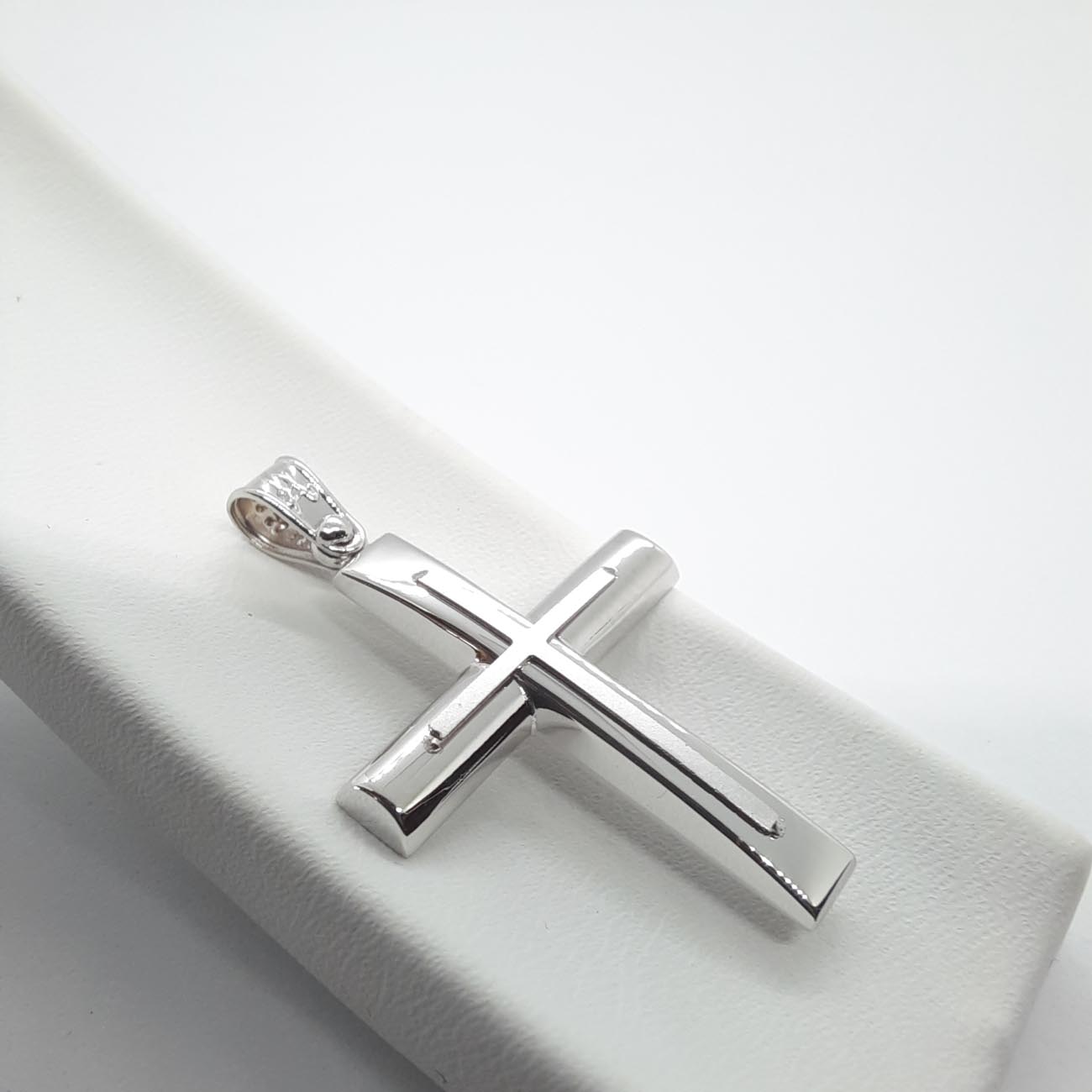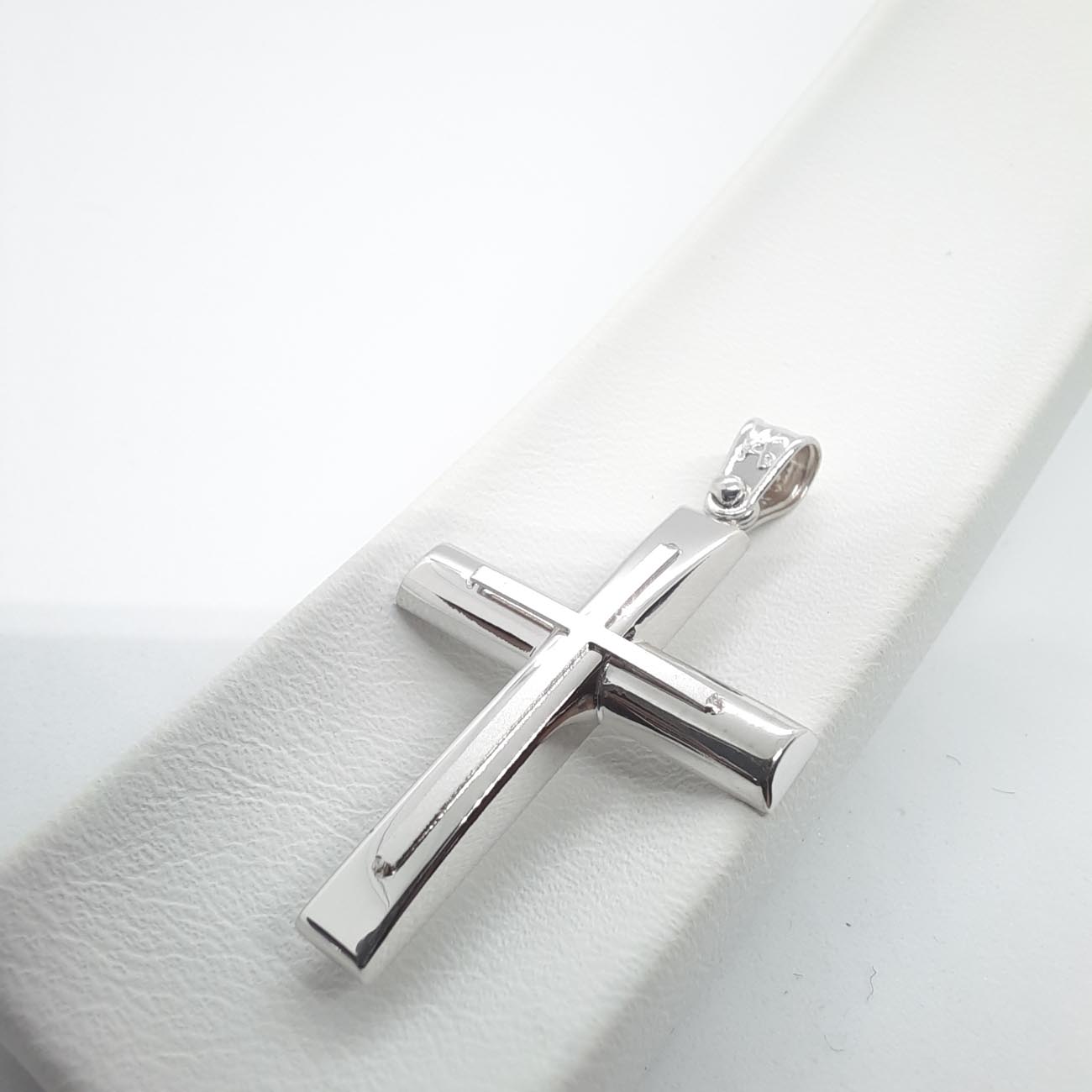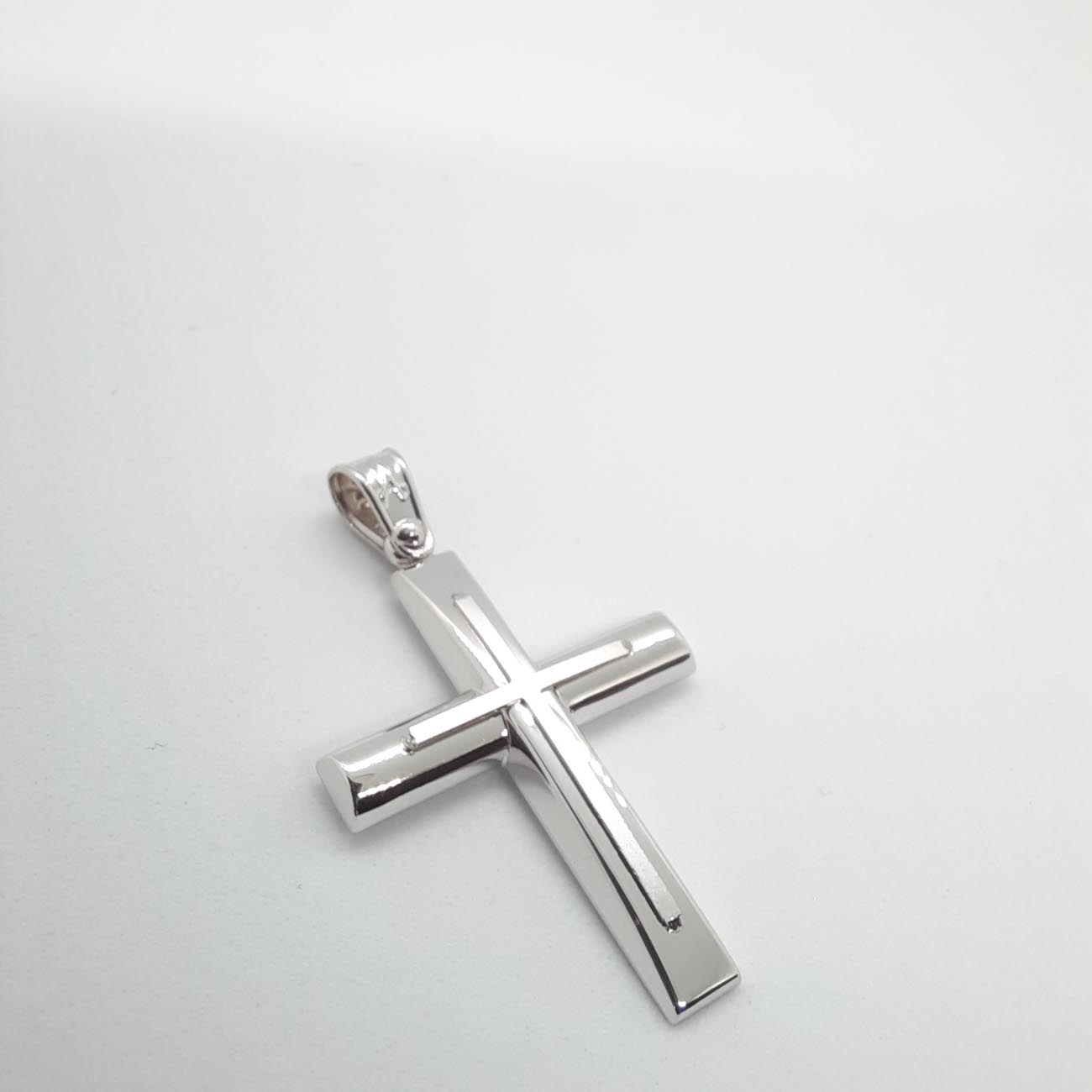Λιτός, απλός και σοβαρός σταυρός από λευκόχρυσο Κ9 , ιδανικός για βάπτιση μπέμπας ή μπέμπη. Ένας ακόμη σταυρός , μίνιμαλ, γραμμικός και ματ στολίζει την λουστρέ επιφάνειά του. FASHION TIP : μπορείτε να το συνδυάσετε με λευκόχρυση αλυσίδα, ή δερμάτινο λουράκι για μια ροκ αισθητική.