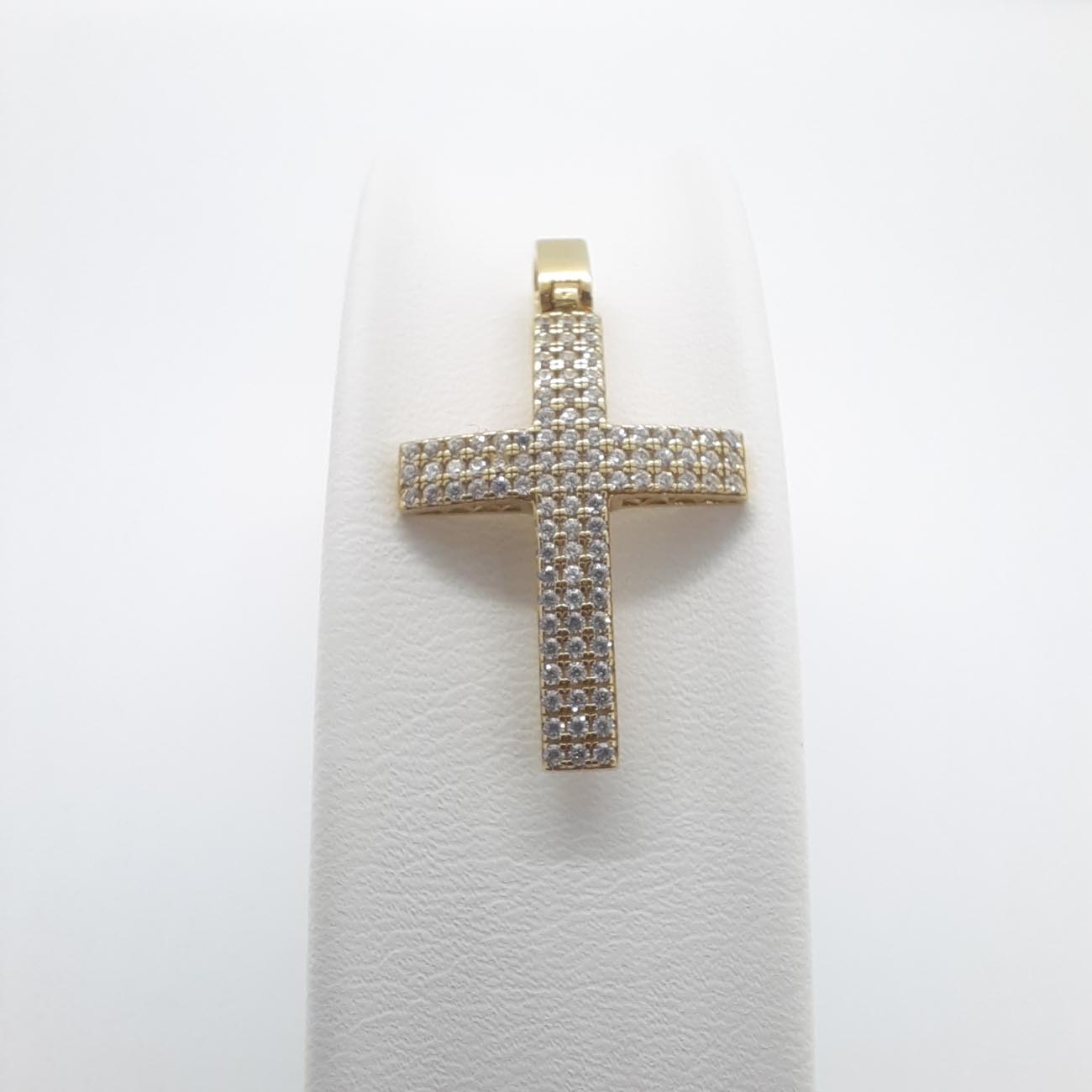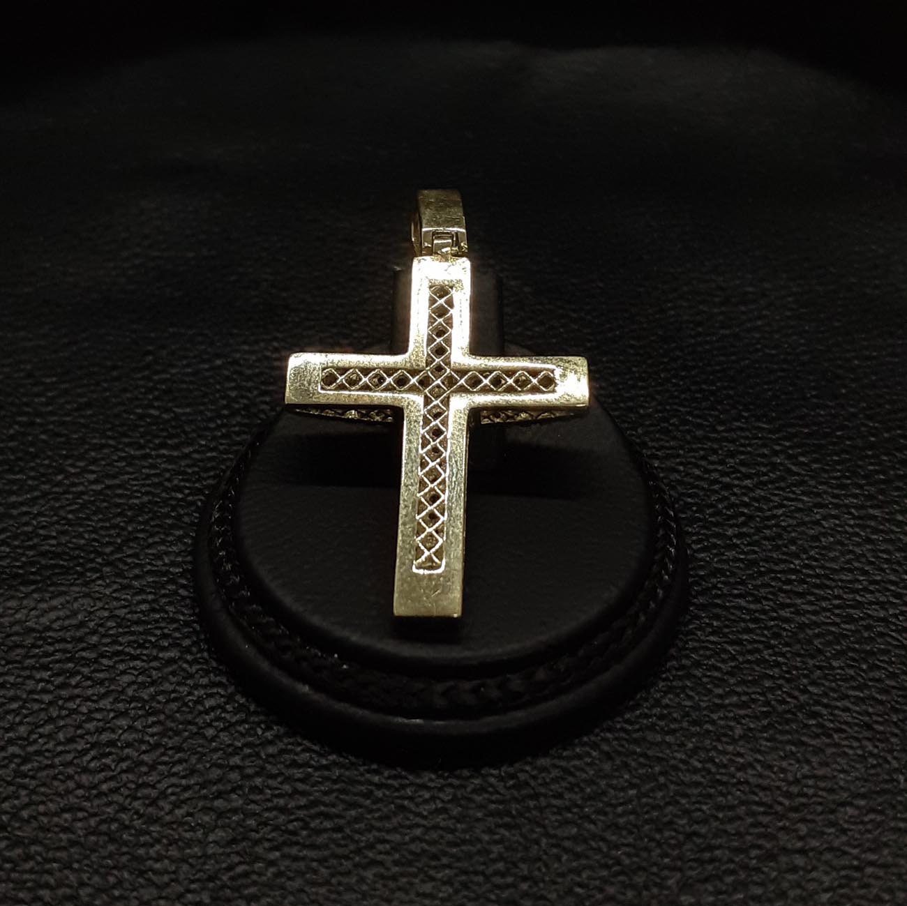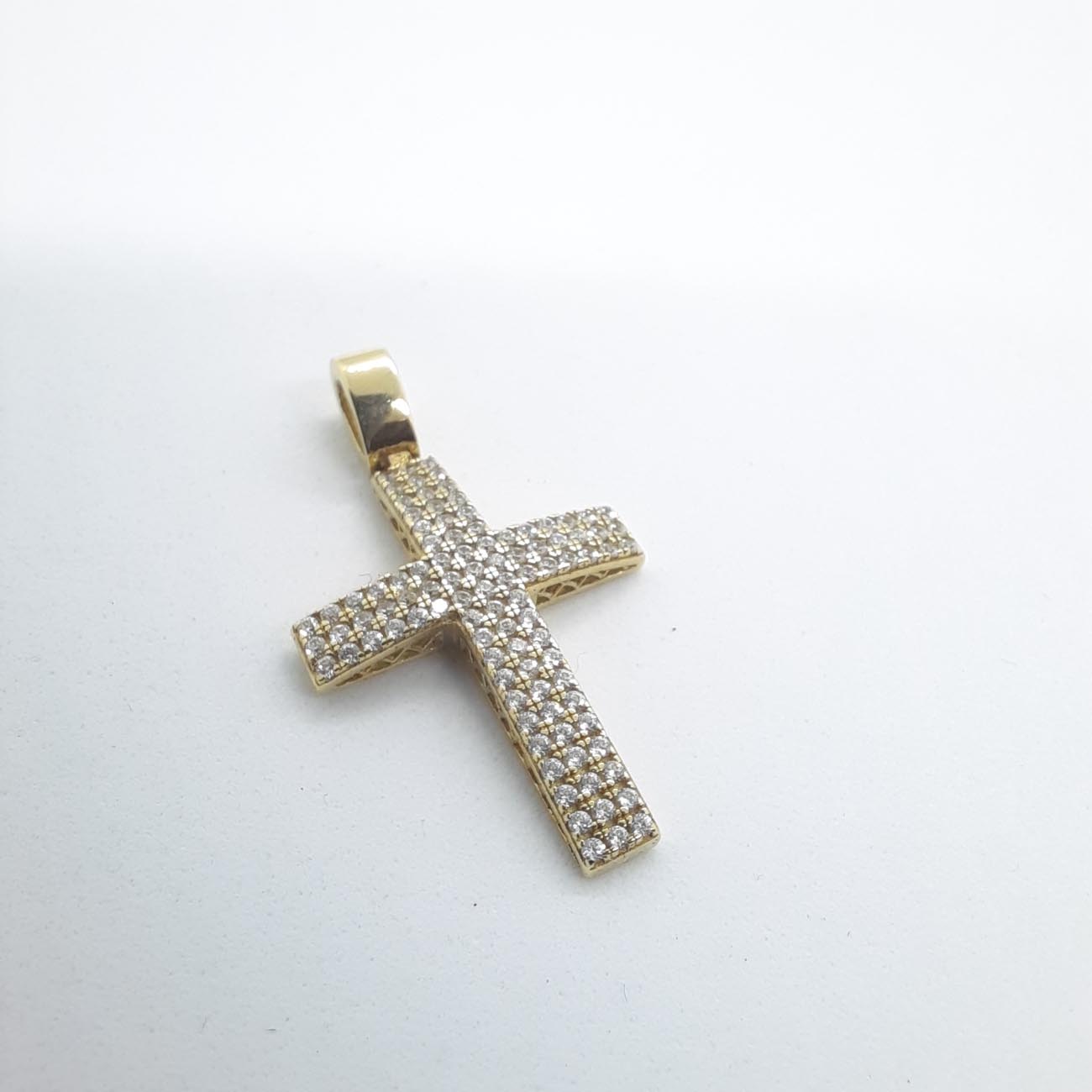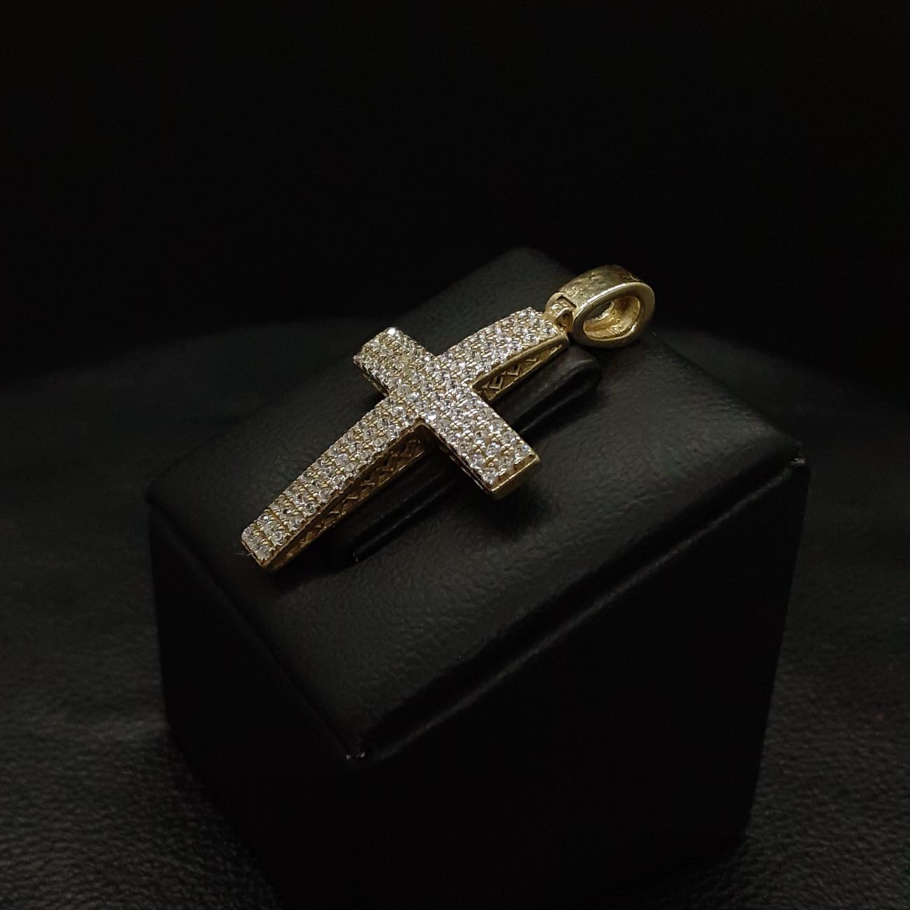 Πανέμορφος σταυρός από χρυσό 14 καρατίων,double face , με αμέτρητα εκτυφλωτικά ζιργκόν στην μία όψη και λιτό σκαλισμένο σταυρό στην πίσω όψη , ιδανικός σταυρός για βάπτιση μπέμπας αλλά και για πολύτιμο δώρο αρραβώνα και επετείου για την γυναίκα που λατρεύει τις ξεχωριστές εμφανίσεις.